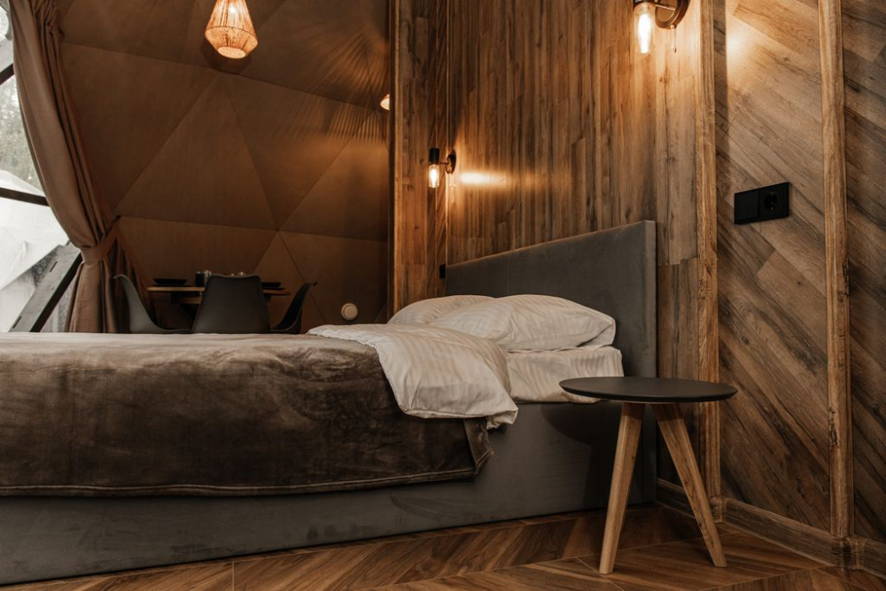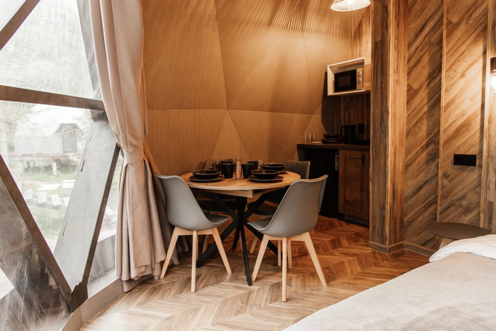 Купольный домик с панорамными окнами: идеально для 4-х гостей, с великолепным видом на природу.