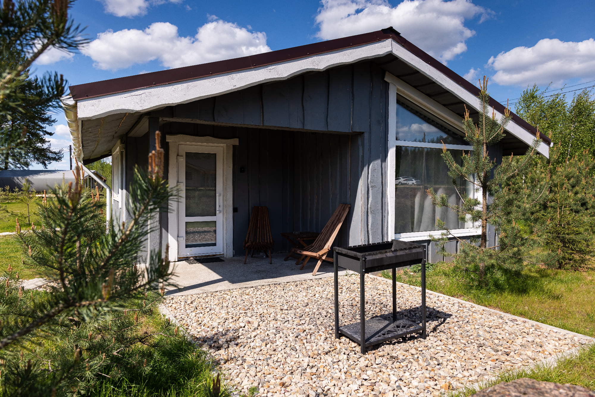 Барбекю зона есть около домиков Дом с панорамным видом на пруд, Дом с панорамным видом на лес, Дом Семейный, Премиум на двоих, Домик с камином.