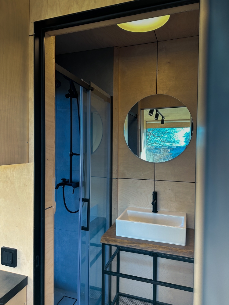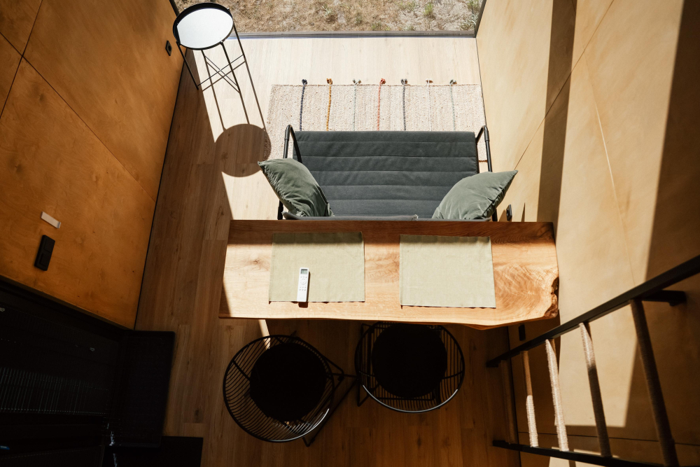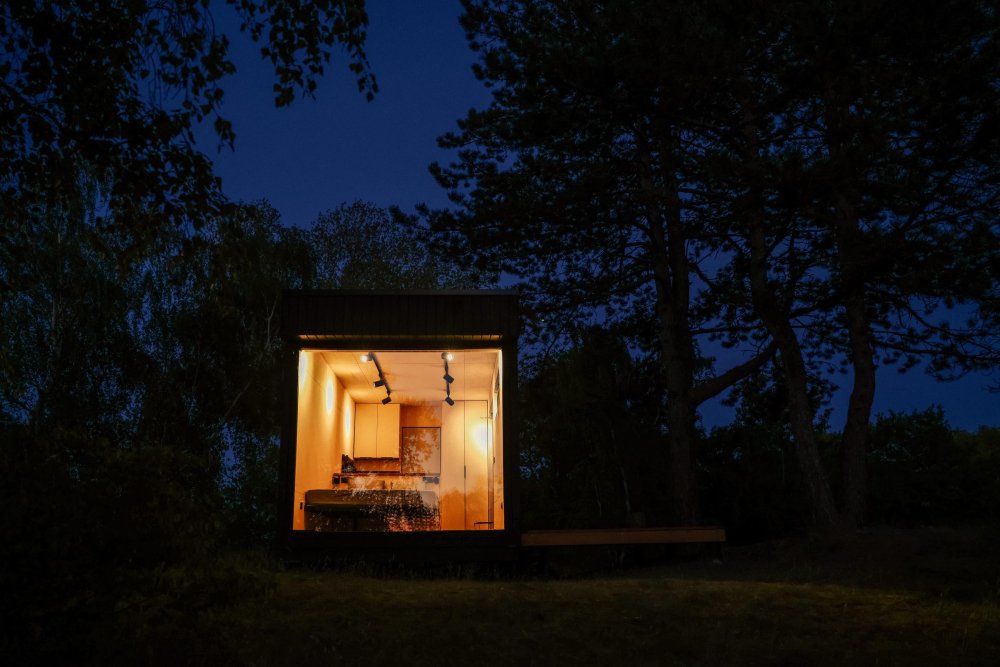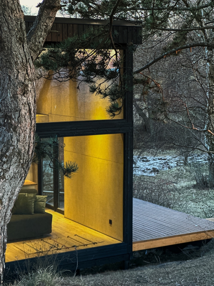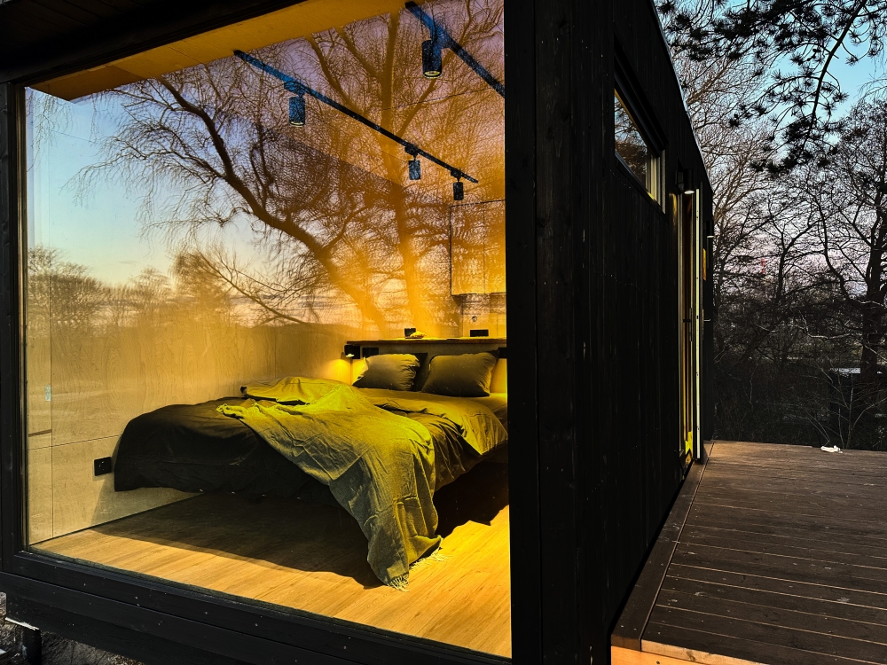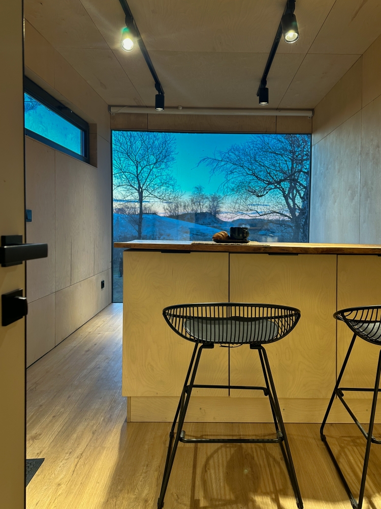 Хитте находятся в отдалении друг от друга, чтобы гости насладились приватностью. В каждом модуле есть мини-кухня, рабочая зона и огромное панорамное окно, стирающее границу с природой.