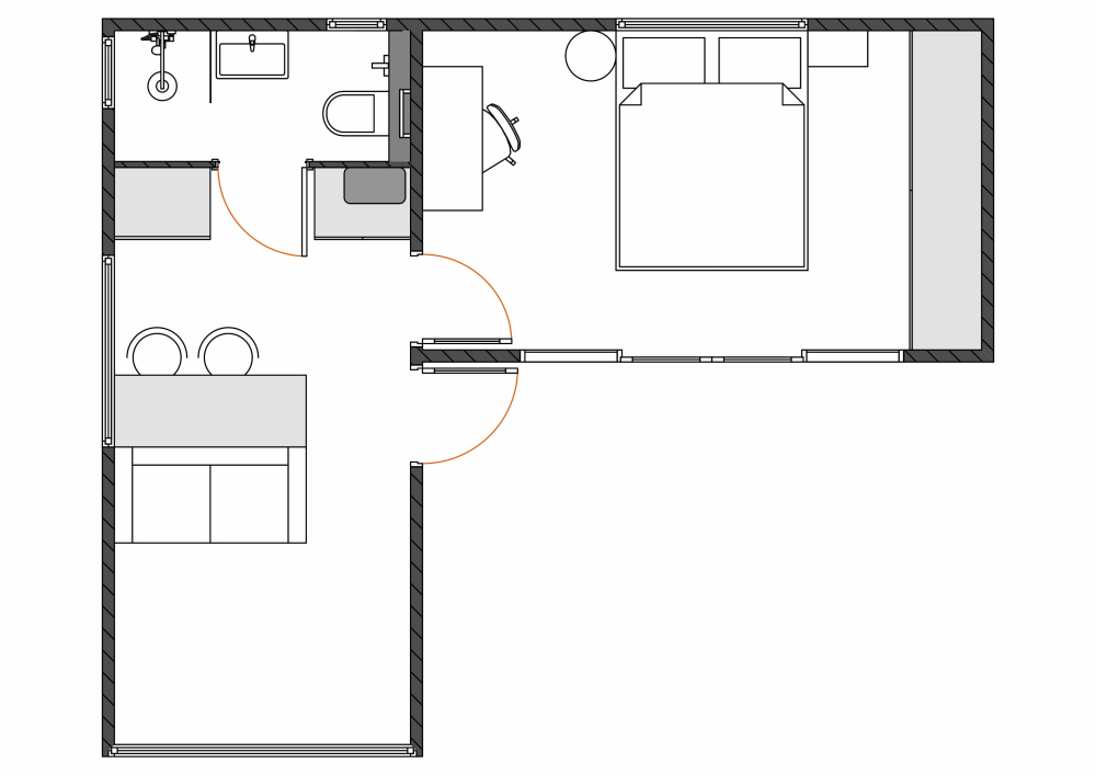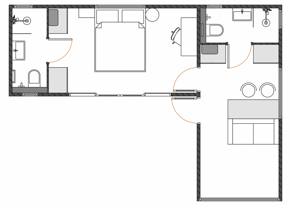 - Семейный Хитте L2 с террасой | 2 комнаты и 2 санузла