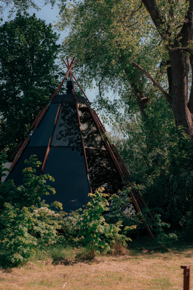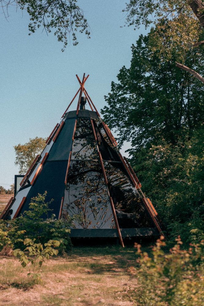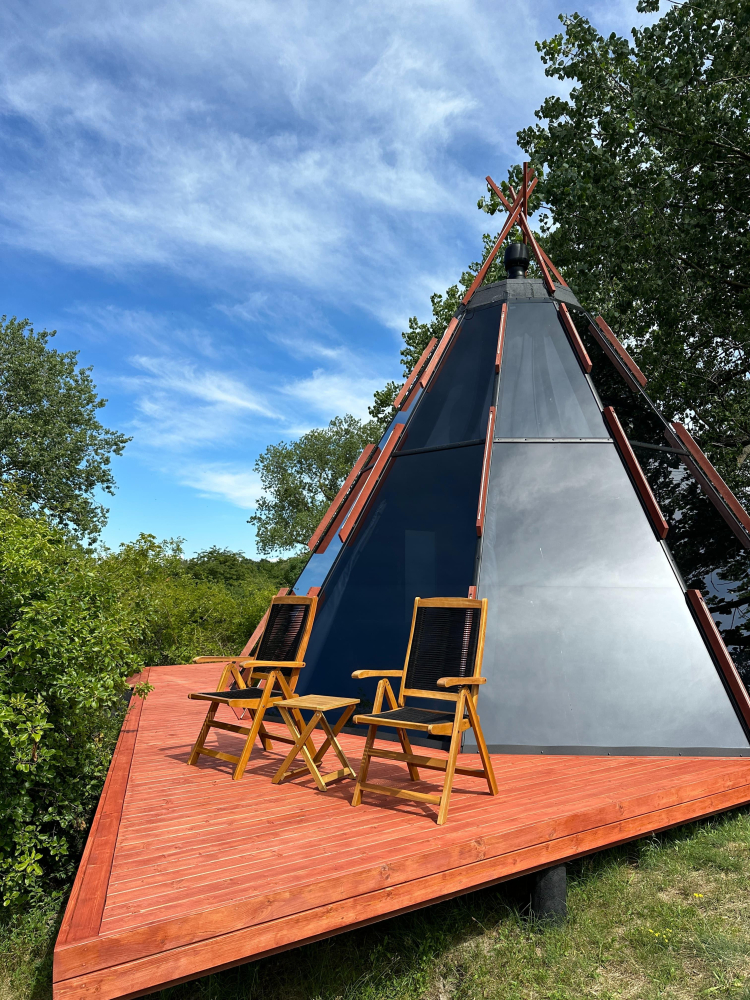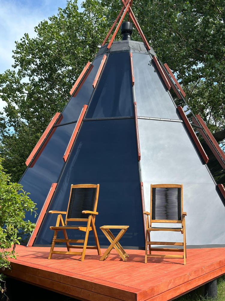 - Нео Типи 360 с террасой | красивый панорамный вид на небо и дюны, сквозь которые частично видно море