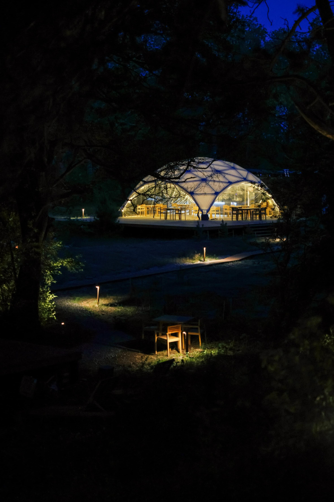 Ключевая идея концепции в достижении гармонии души и тела наедине с целительной природой и самим собой. Наш сервис и эстетика места помогут расслабиться и насладиться моментом. Просторная территория объединена единым световым решением, которое подчеркивает красоту природы Балтийской косы в вечернее время.