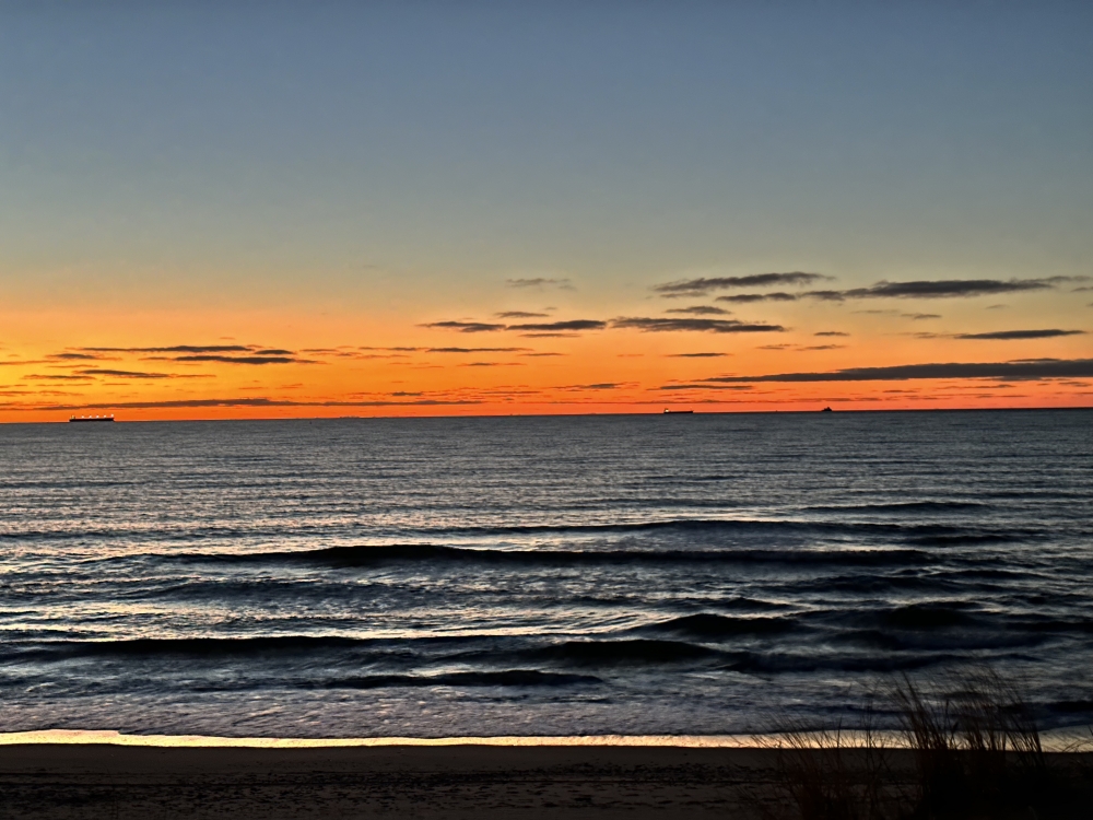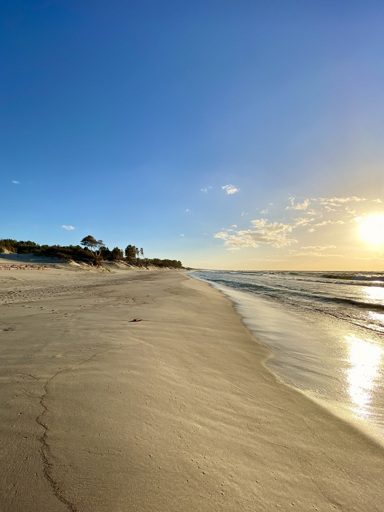 · встречайте балтийские закаты с уходящими в горизонт, кораблями на диком пустынном пляже,
