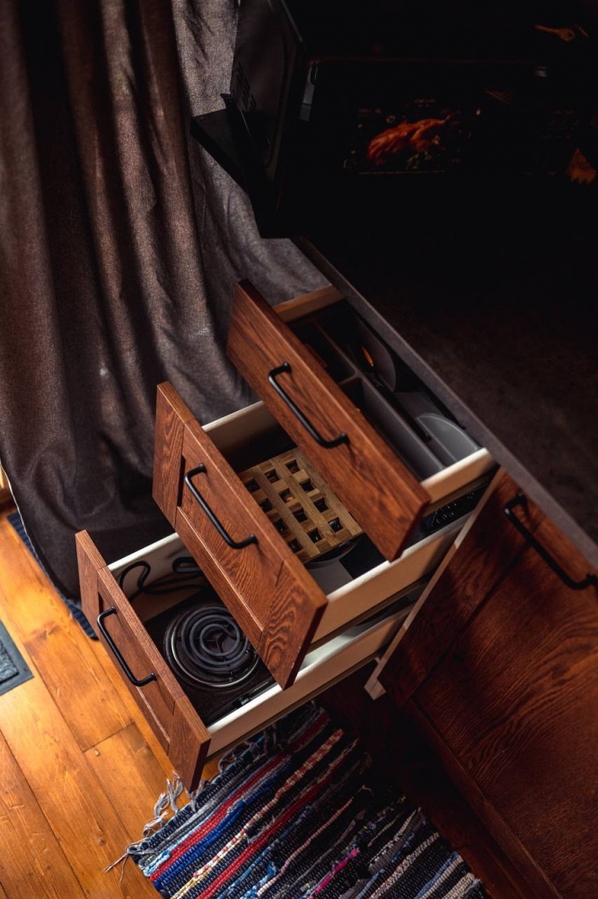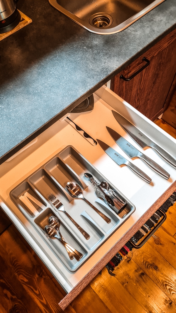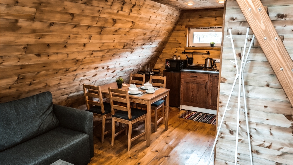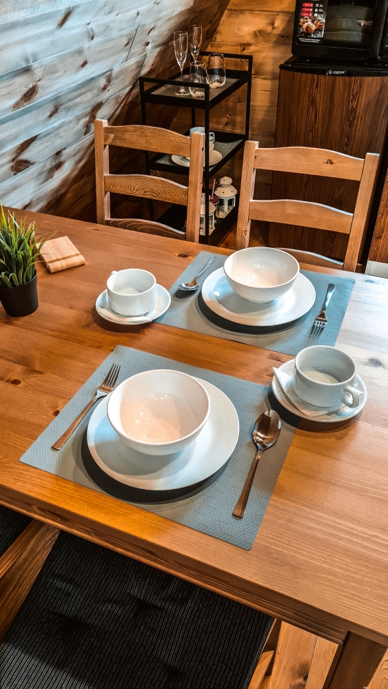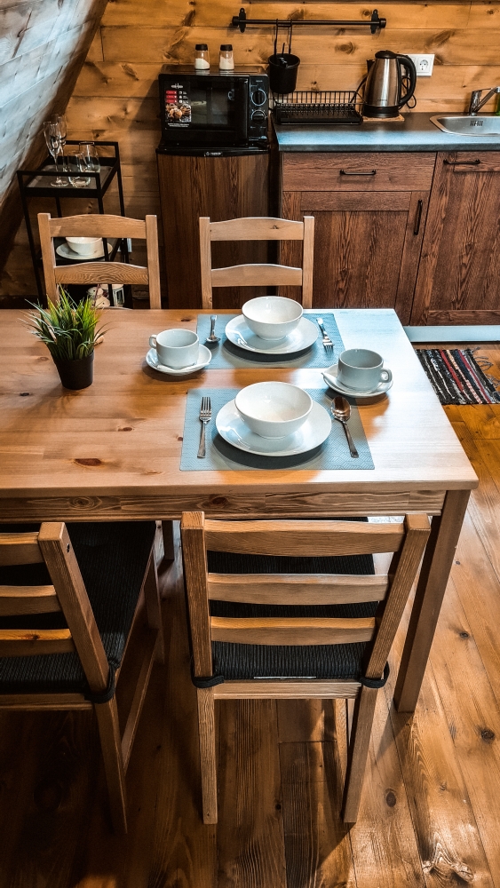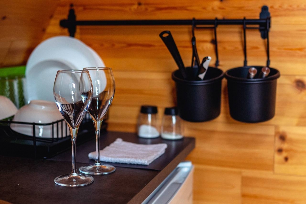 В каждом доме есть кухня со всей необходимой посудой и техникой для самостоятельного приготовления пищи.