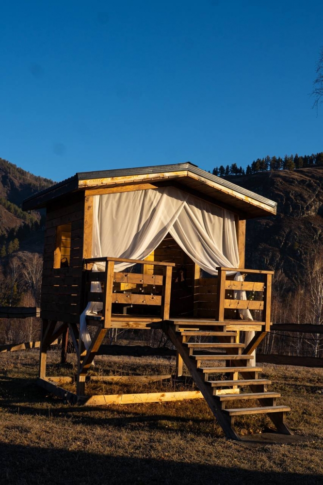Уединенный отдых на берегу реки. Уютные A-frame домики спрятались в укромном месте на левом берегу Катуни. Здесь всегда тихо и спокойно. В стороне от шума и суеты, но, тем не менее, недалеко от благ цивилизации - всё ради комфорта!
