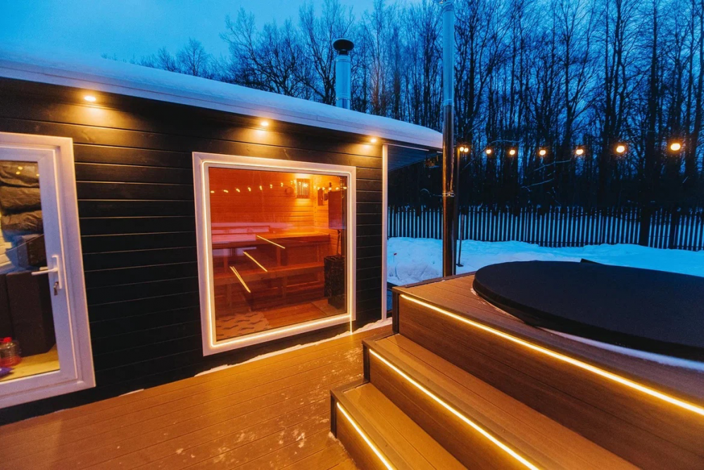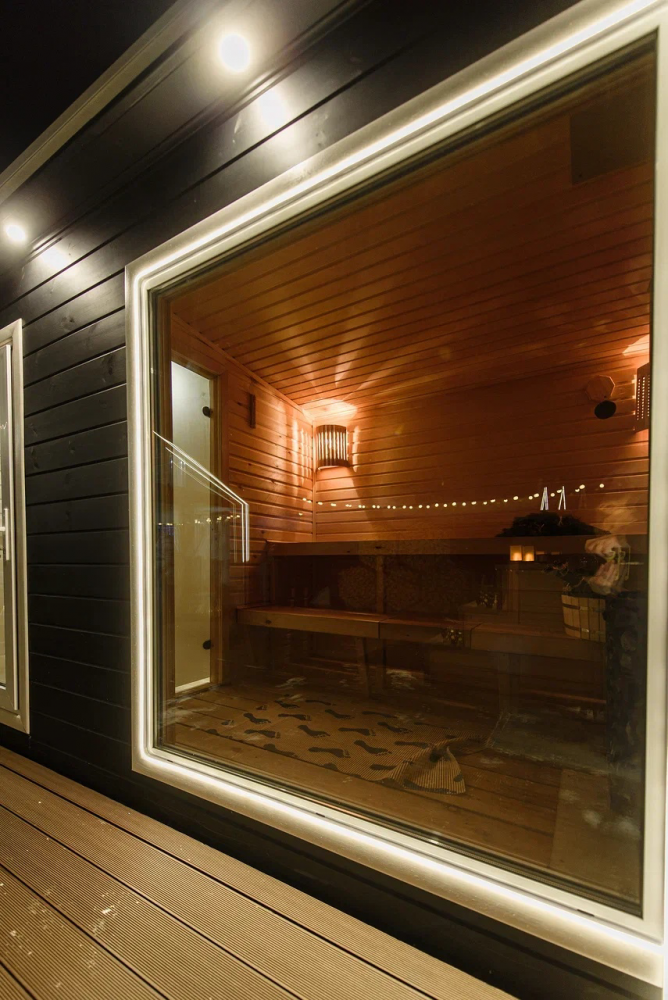 Персональная баня с панорамным окном.