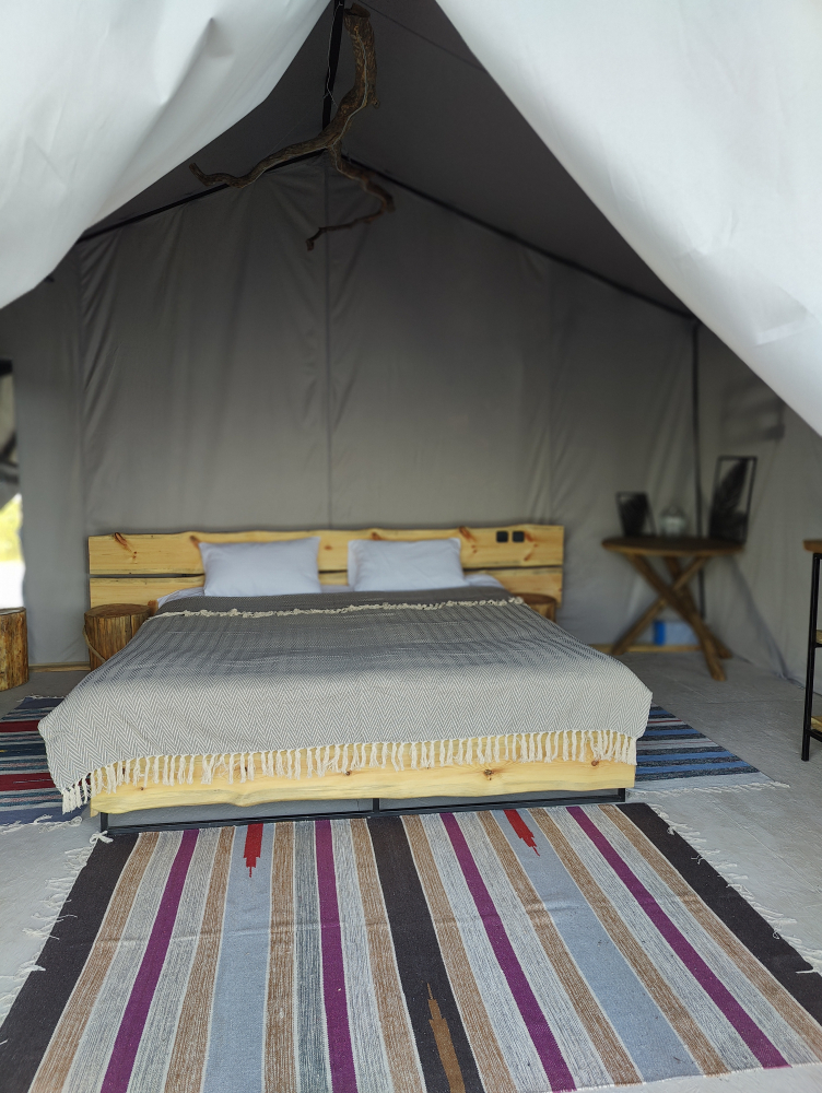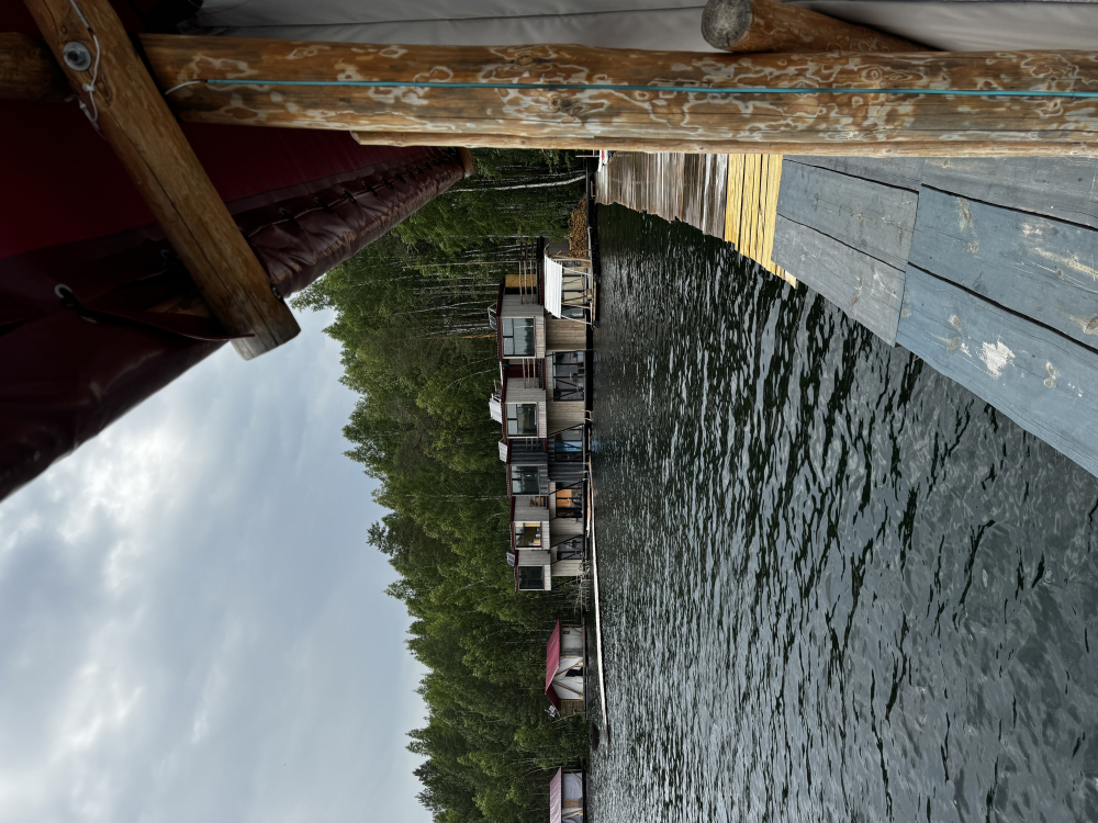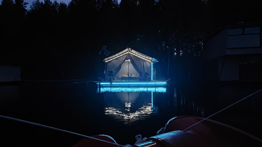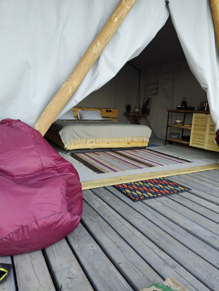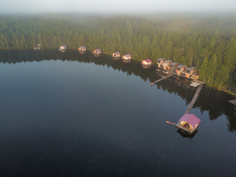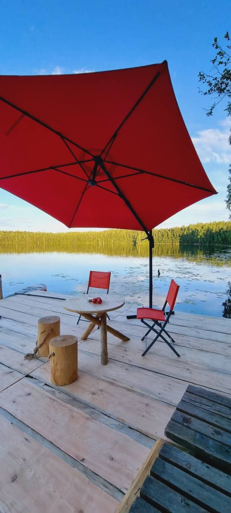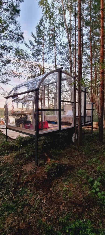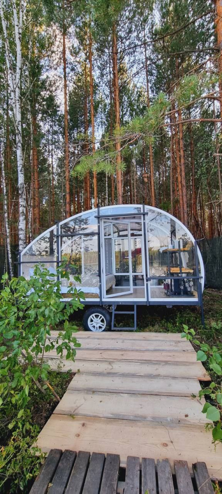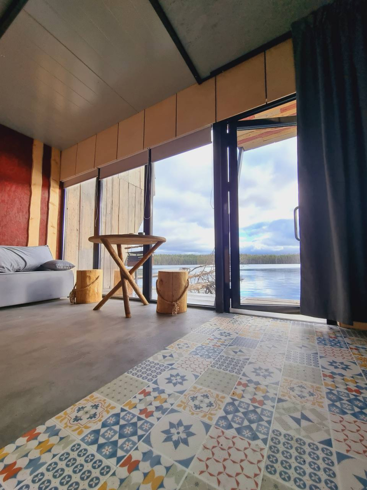 Двухэтажный домик с панорамными окнами находится прямо на ВОДЕ. Площадь комнат 35 м² + 2 балкона, площадью 15 м². Каждый домик отапливается и оборудован всем необходимым для комфортного отдыха на природе (двуспальная кровать с белоснежным, гипоаллергенным бельем, полотенца, кухонная зона с газовой плиткой, чайник, кастрюля, сковорода, чашки, тарелки и столовые приборы, сейф, шкаф/гардероб, санузел с БИО-туалетом, москитная сетка, терраса с мангалом и спуском в воду).