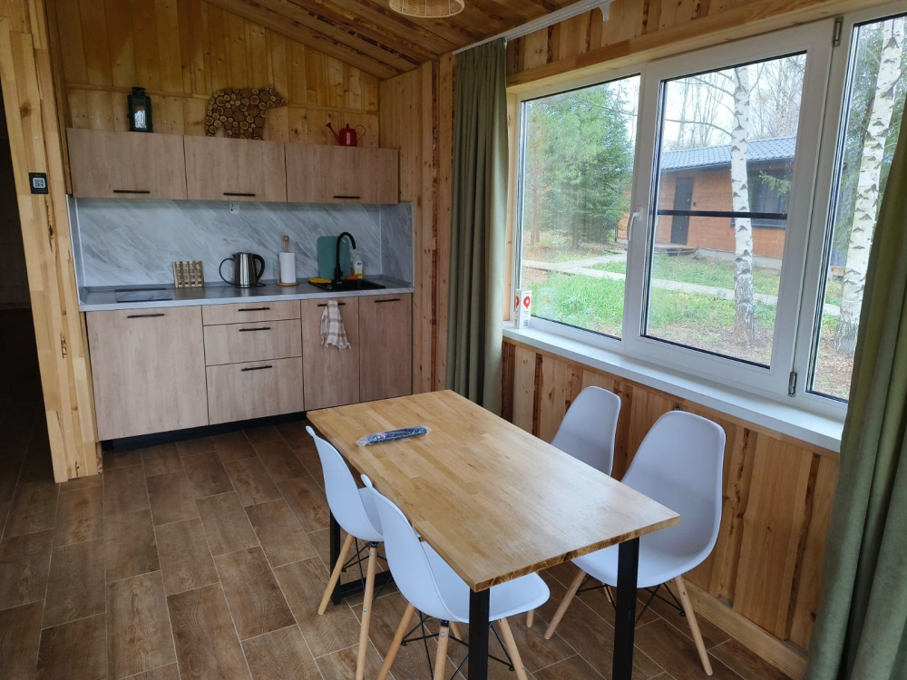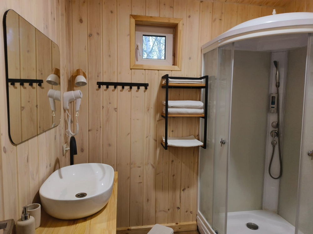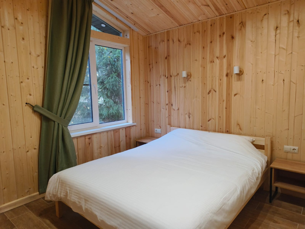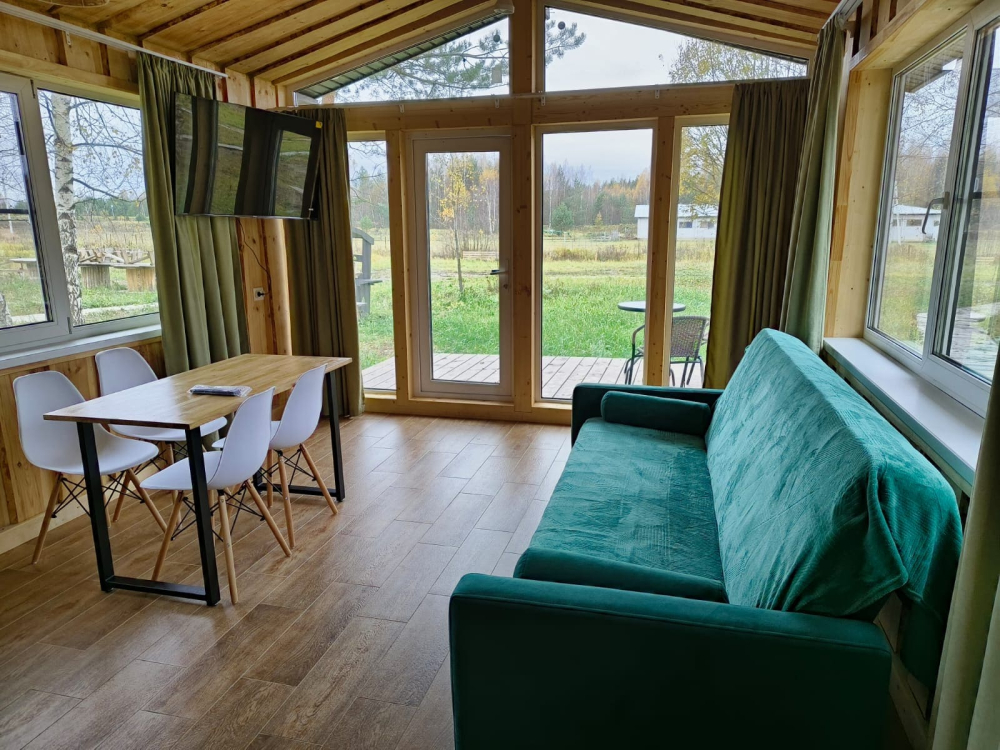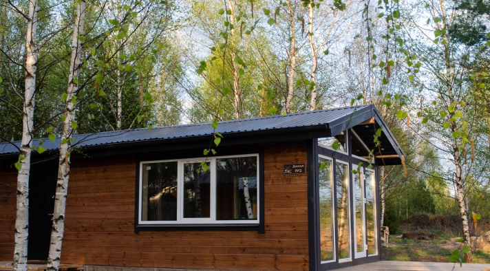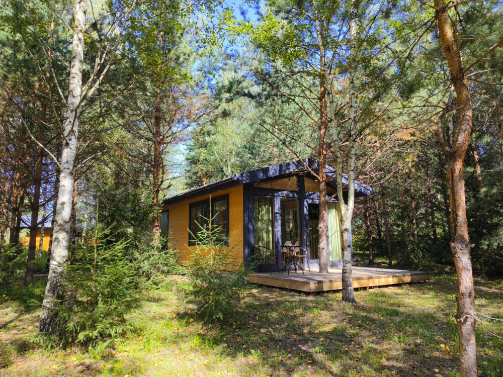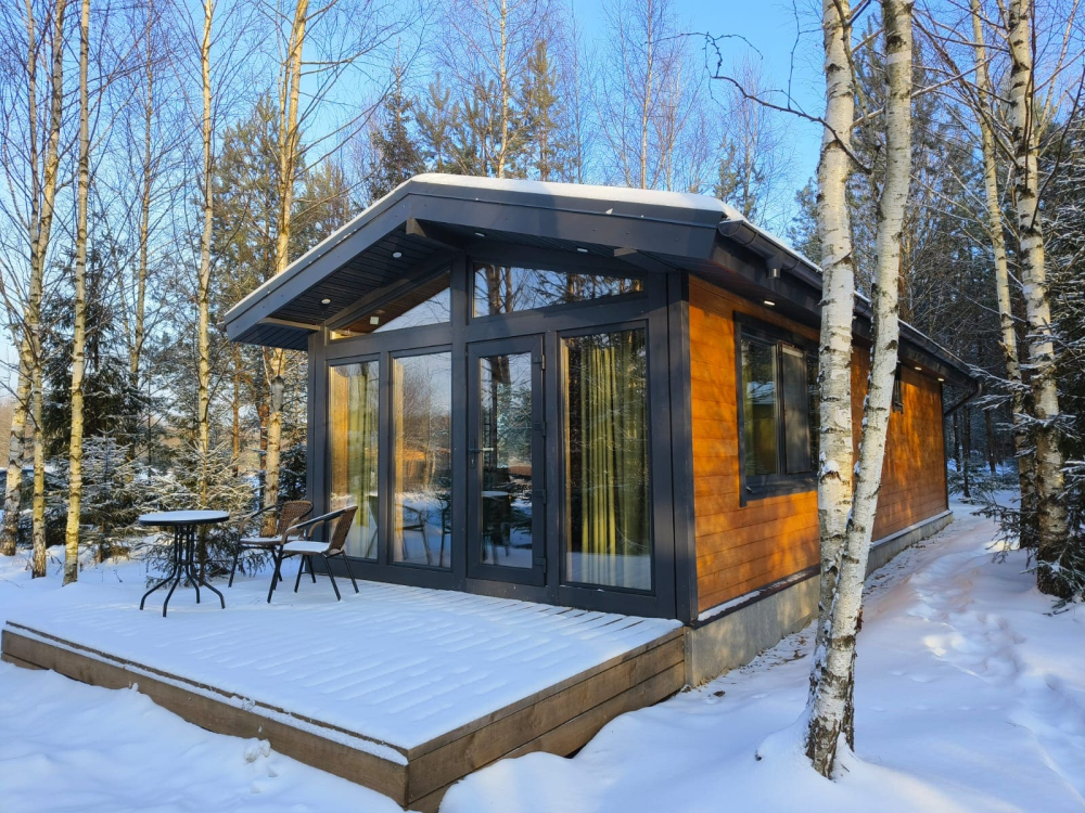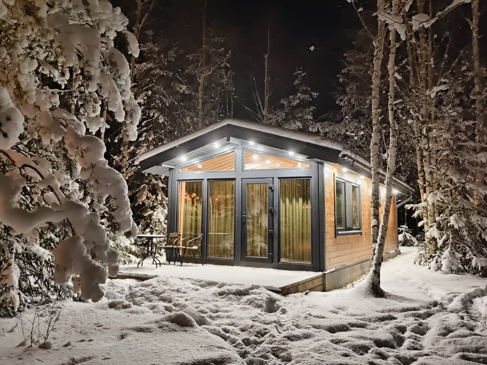 - Предусмотрено размещение в эксклюзивных домиках с панорамным видом на лес.