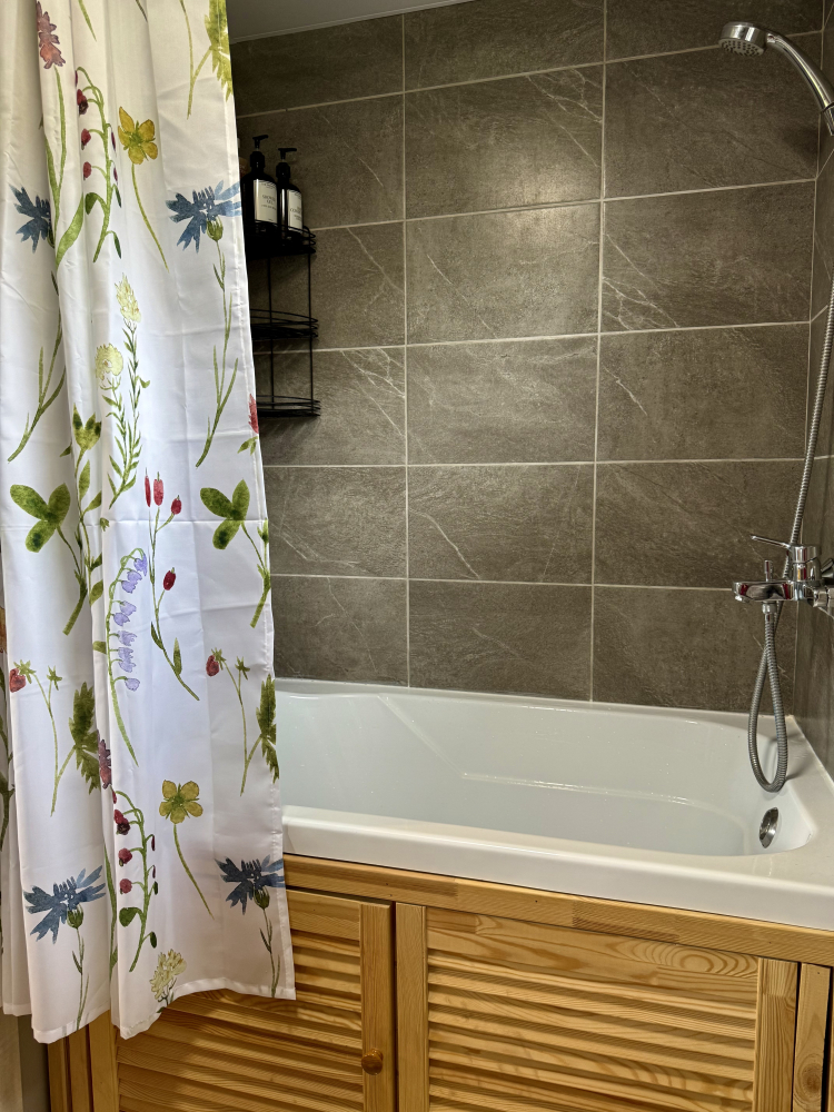 - Санузел: компактный, с душем, туалетом, раковиной, полотенцами и тёплым полом.