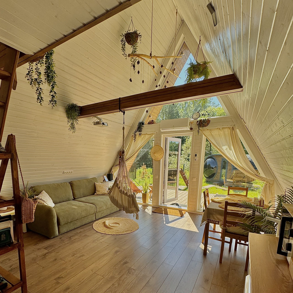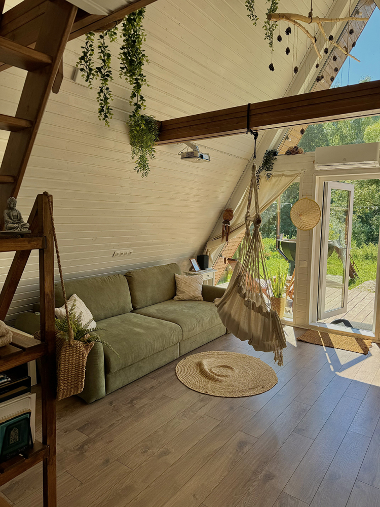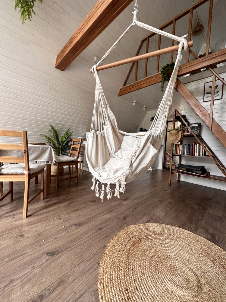 - Ваза для цветов, книги, настольные игры и уютные качели