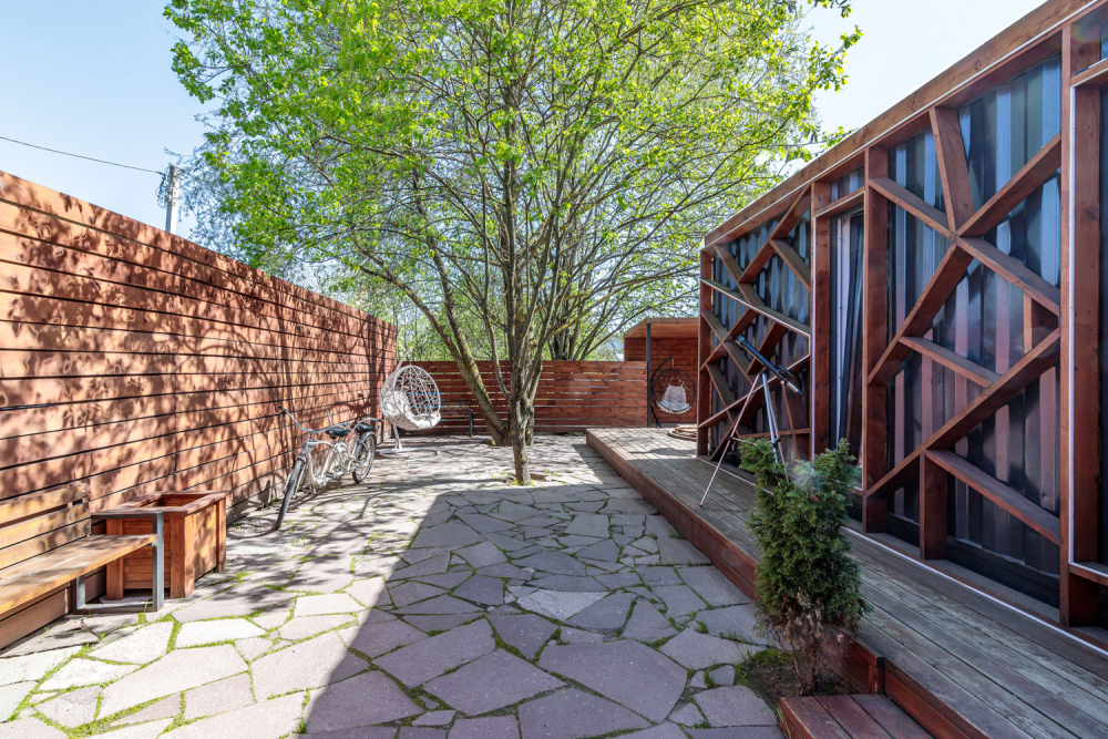 Домик рассчитан на размещение до 2 гостей, с возможностью проживания ребёнка до 4 лет (детская кроватка-манеж предоставляется по запросу). Заезд с 15:00, выезд до 11:00; ранний заезд и поздний выезд обсуждаются индивидуально.