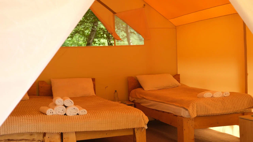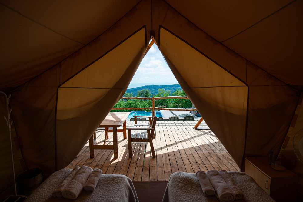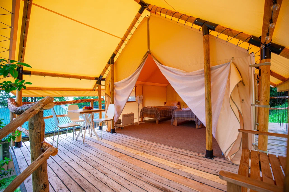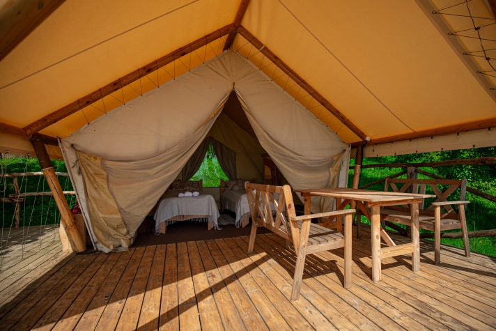 Сафари-тенты: Комфортабельные палатки с крытой террасой.