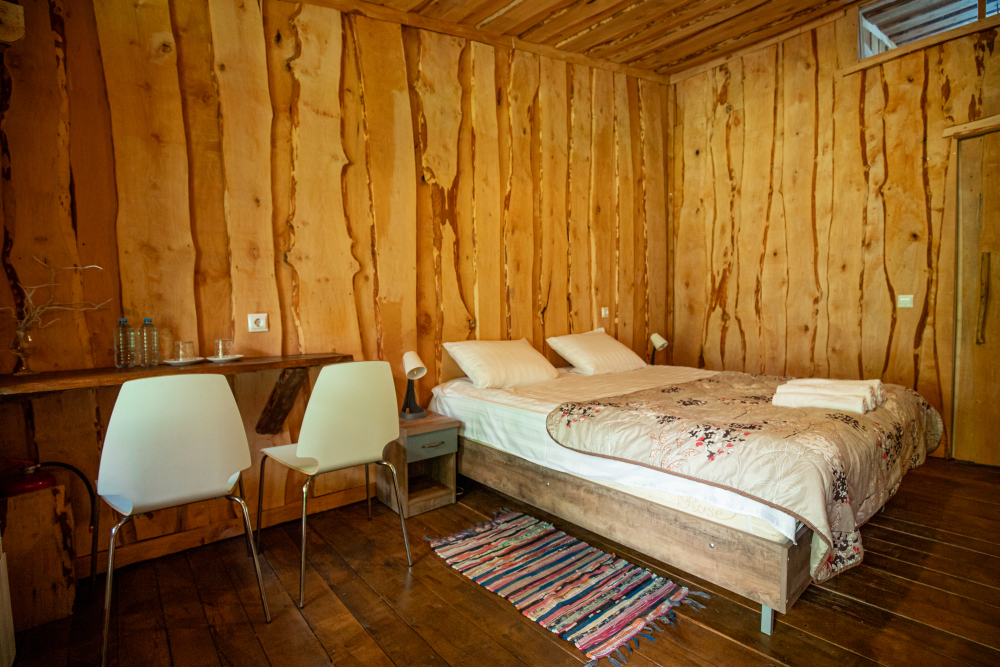 На территории есть банный комплекс, ресторан, бассейн, гриль-беседка, костровая зона, площадка для йоги, а также видовые беседки с живописным видом на горы и море.