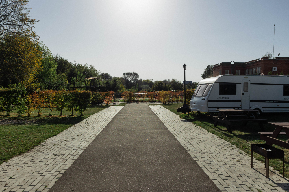 В кемпинге организована специальная площадка для автодомов и жилых прицепов с возможностью подключения к электричеству. На территории организована зона для слива «серой» и залива чистой воды.