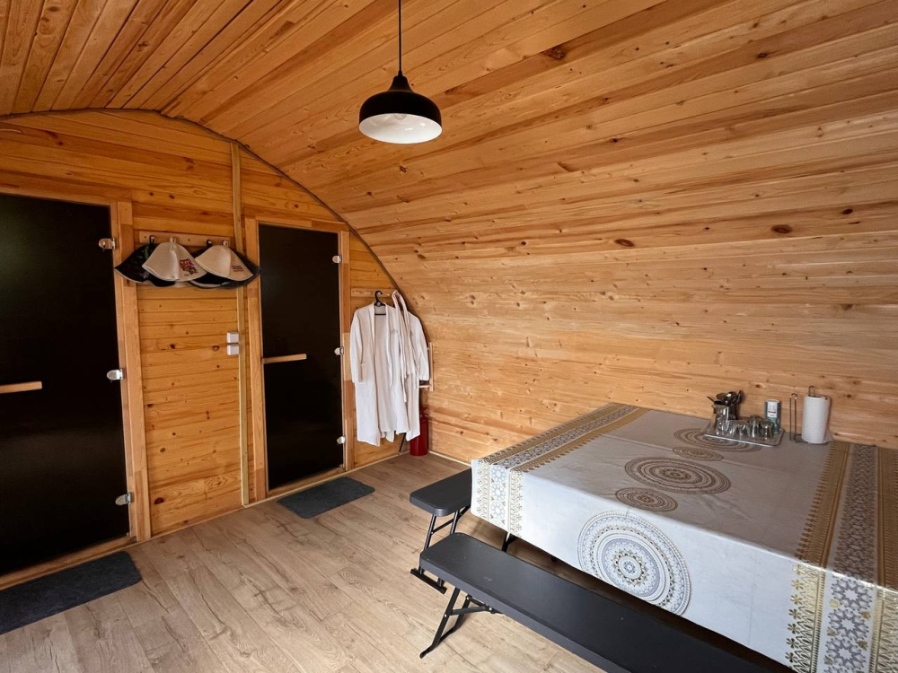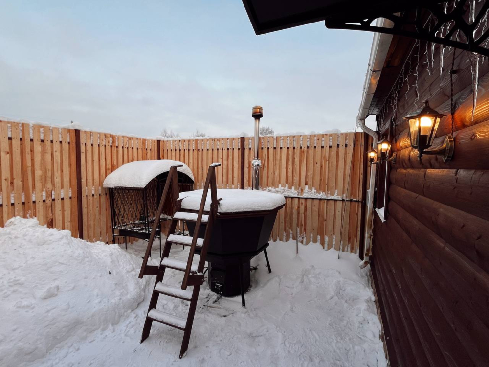 Стоимость аренды горячего чана – 7000 рублей. Гости могут насладиться расслабляющим отдыхом в тёплой воде, окружённой природой.
