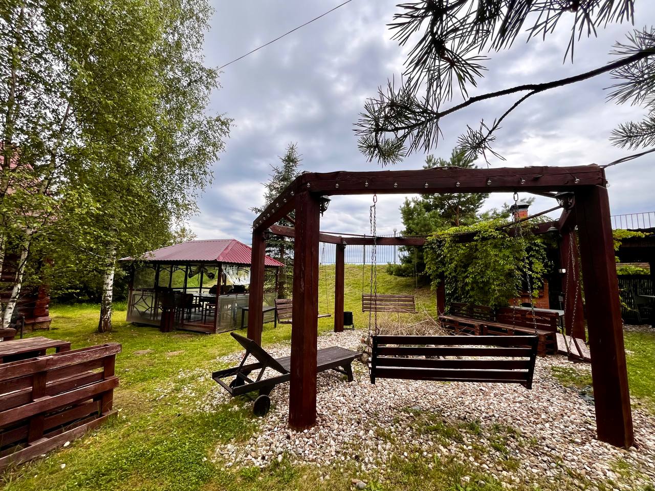 Аренда BBQ-зоны — это отличная возможность провести время на свежем воздухе в уютной обстановке. В вашем распоряжении мангальная зона под навесом, шатёр вместимостью до 15 человек, а также зона отдыха с качелями и кострищем с вечерней подсветкой. Оборудование включает мангал, разделочный стол, решётки и шампура, а также дрова для костра. Стоимость аренды — 15 000 руб. за 6 часов. Наслаждайтесь комфортным отдыхом в кругу друзей и близких!