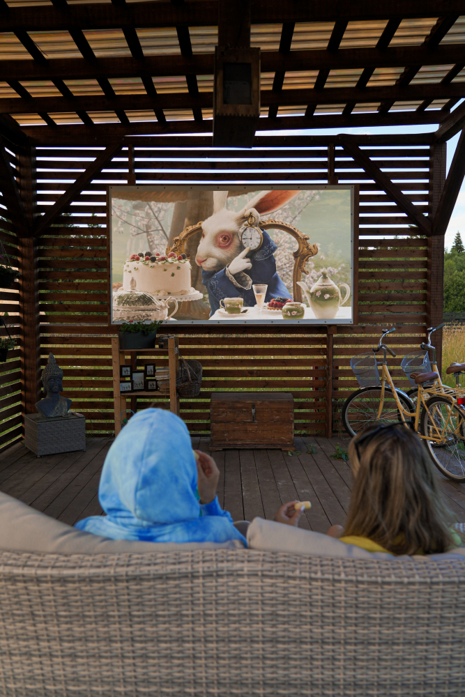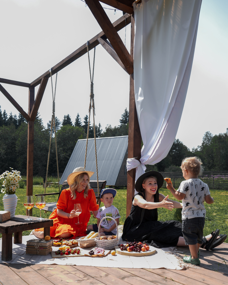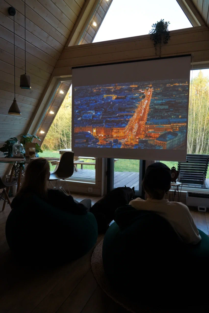 - Летний кинотеатр с качелями и костровой зоной.