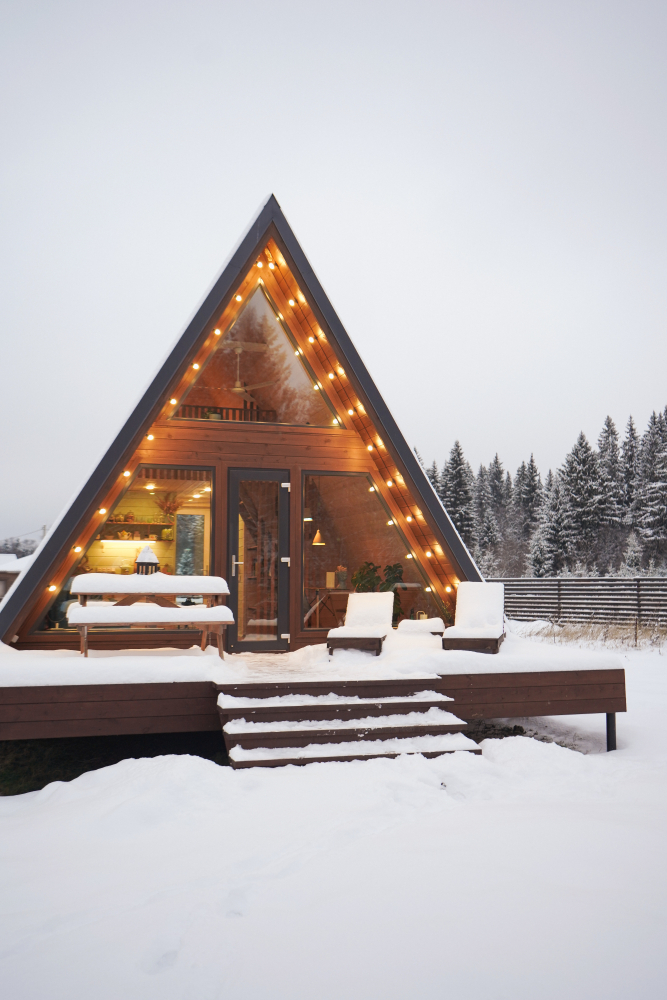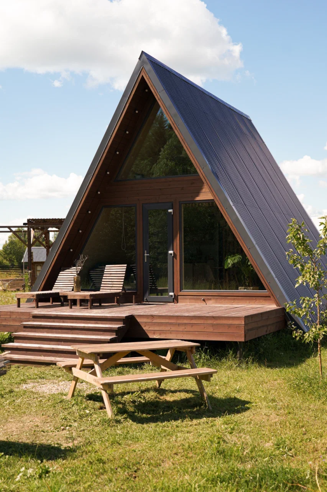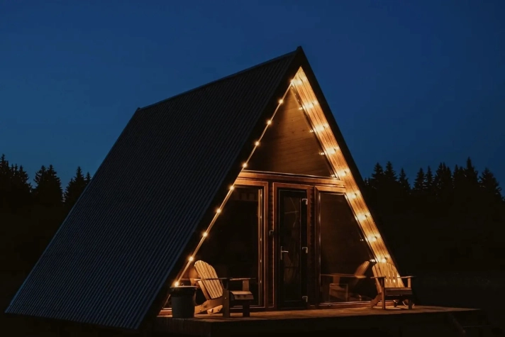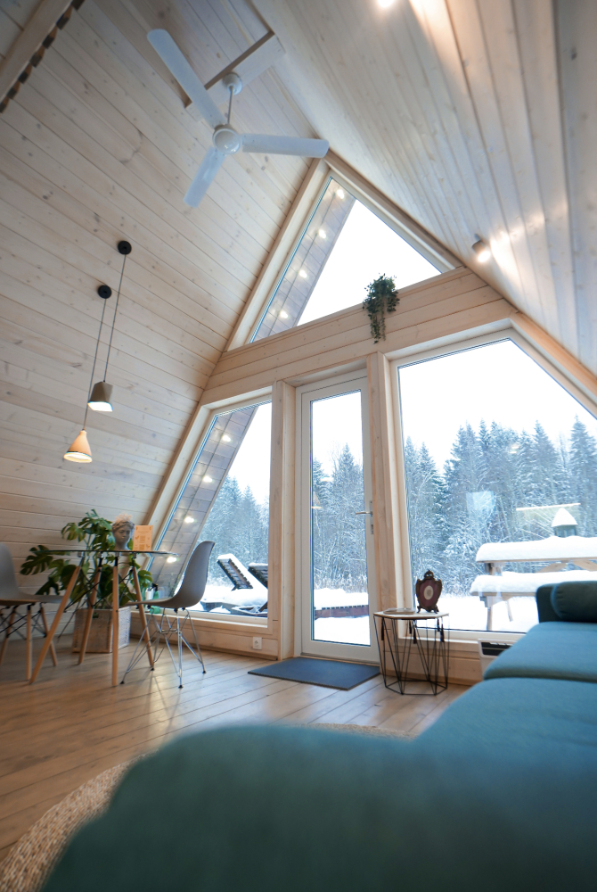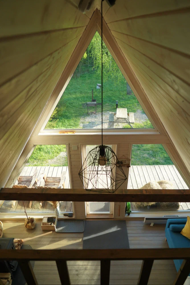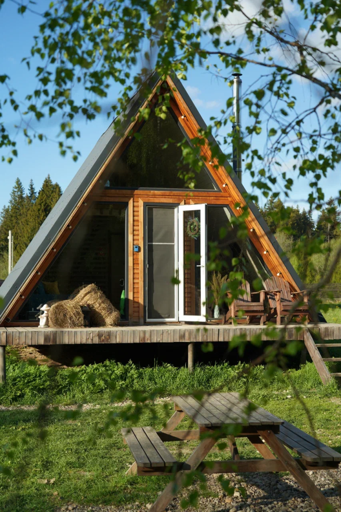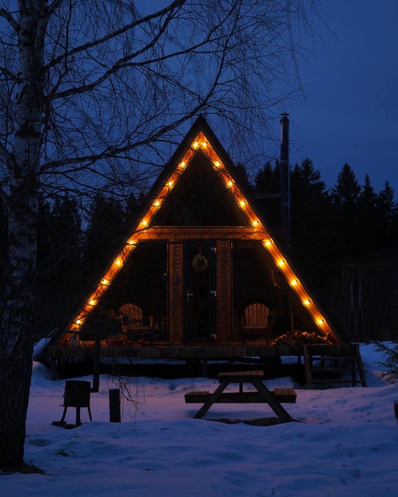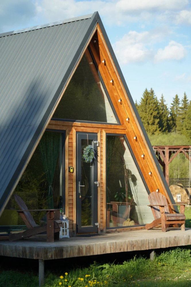 - Современные дома А-фрейм с панорамным видом на первозданный лес.