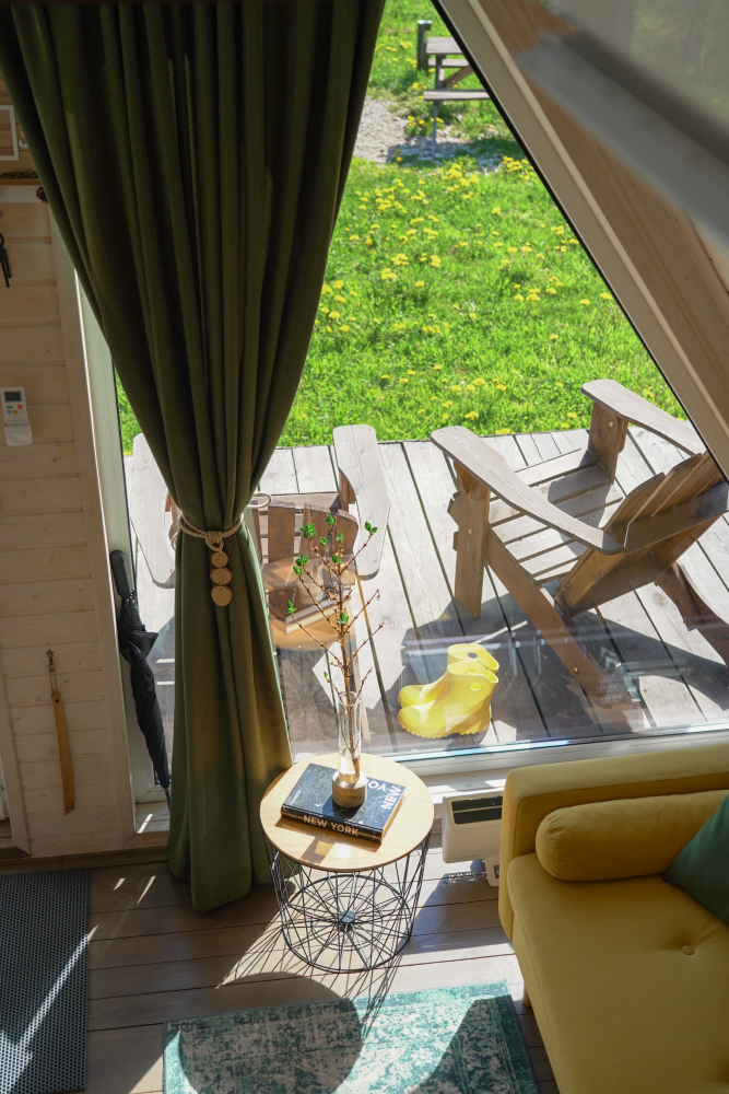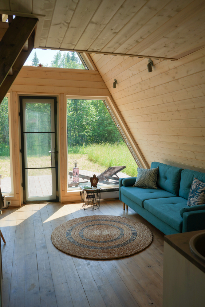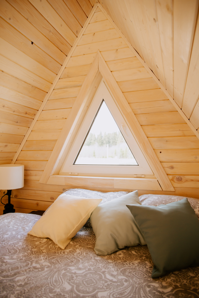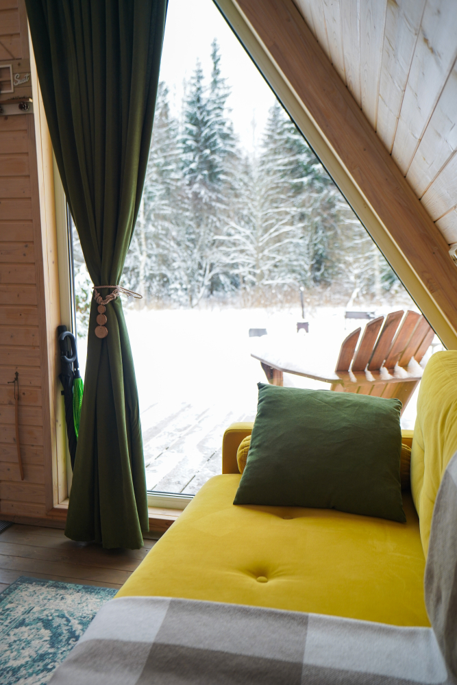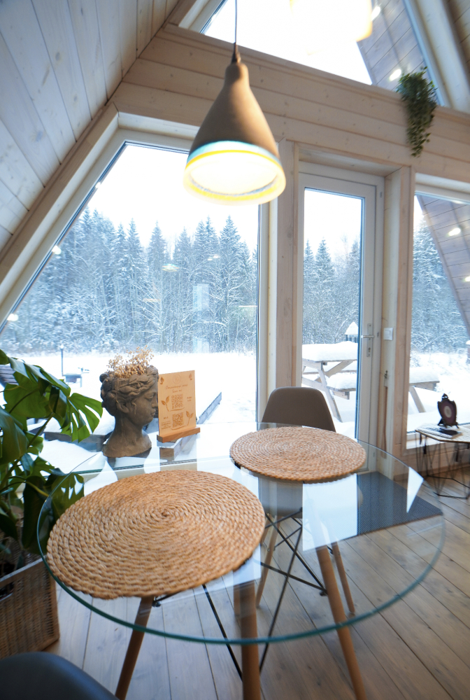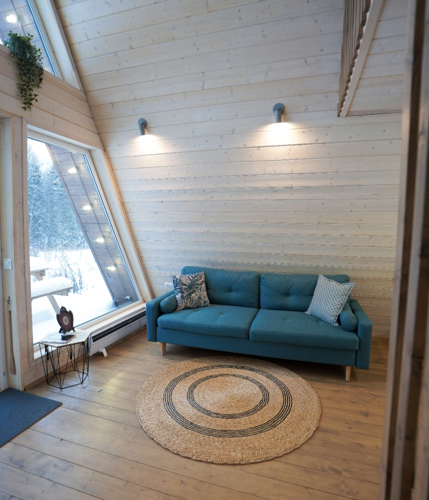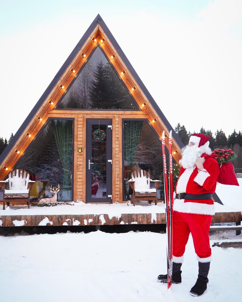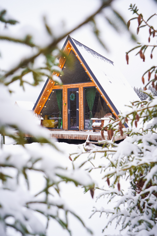 - Современные дома А-фрейм с панорамным видом на первозданный лес.