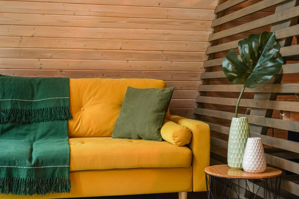 - Дом (желтый) с панорамным видом на лес