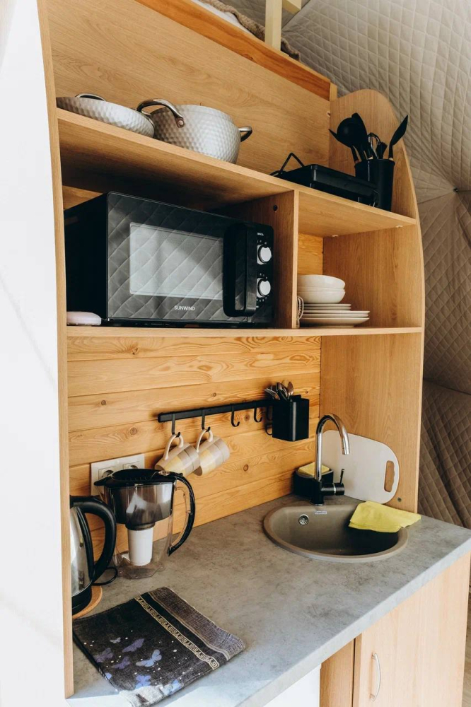 У каждого домика предусмотрена зона для гриля-барбекю, где гости могут приготовить любимые блюда на открытом огне и насладиться уютной атмосферой отдыха.