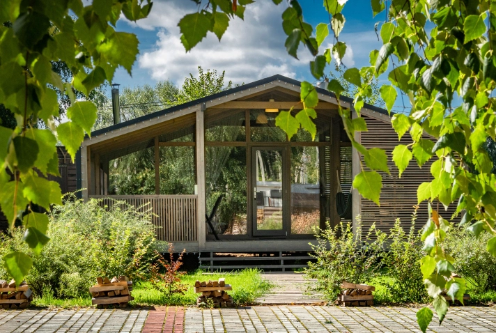 Домики рассчитаны на разное количество гостей (от 4 до 10) и включают просторные гостиные с стильным интерьером. В спальнях оборудованы удобные двухспальные кровати, а в гостиной — раскладные диваны. Кухни оснащены всем необходимым для самостоятельного приготовления пищи, а в ванной комнате предусмотрен индивидуальный гигиенический набор.