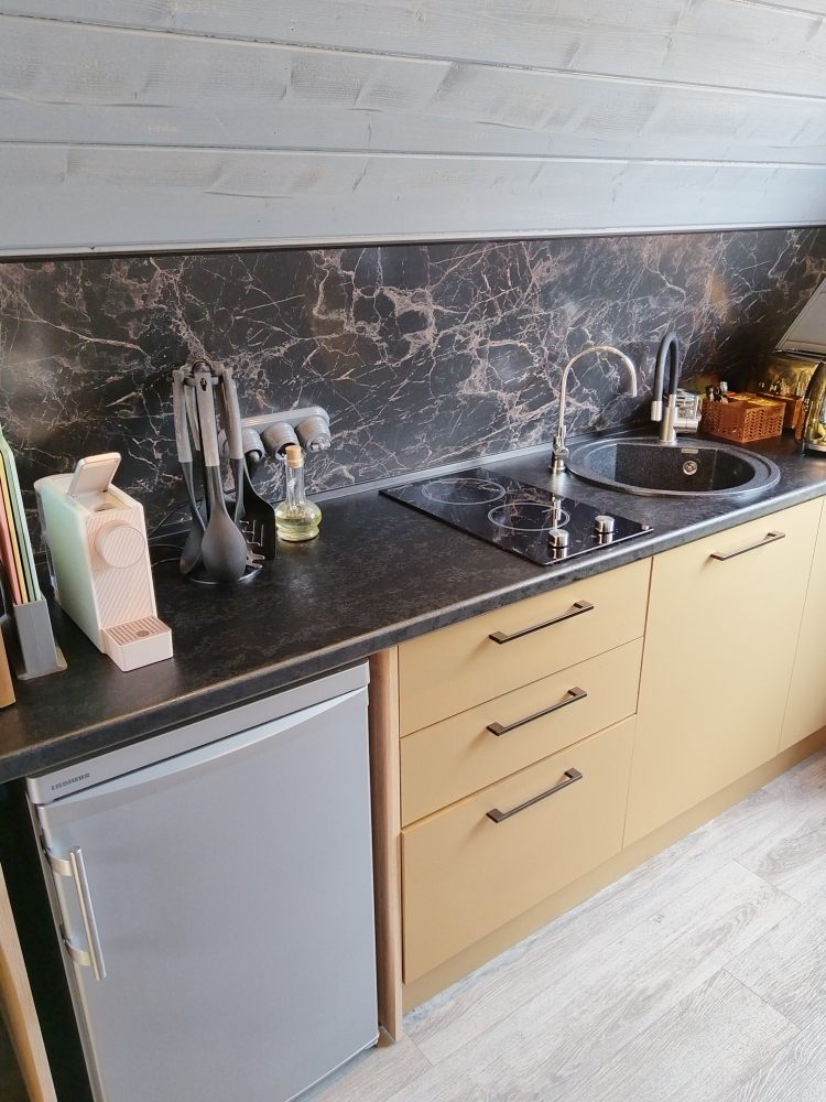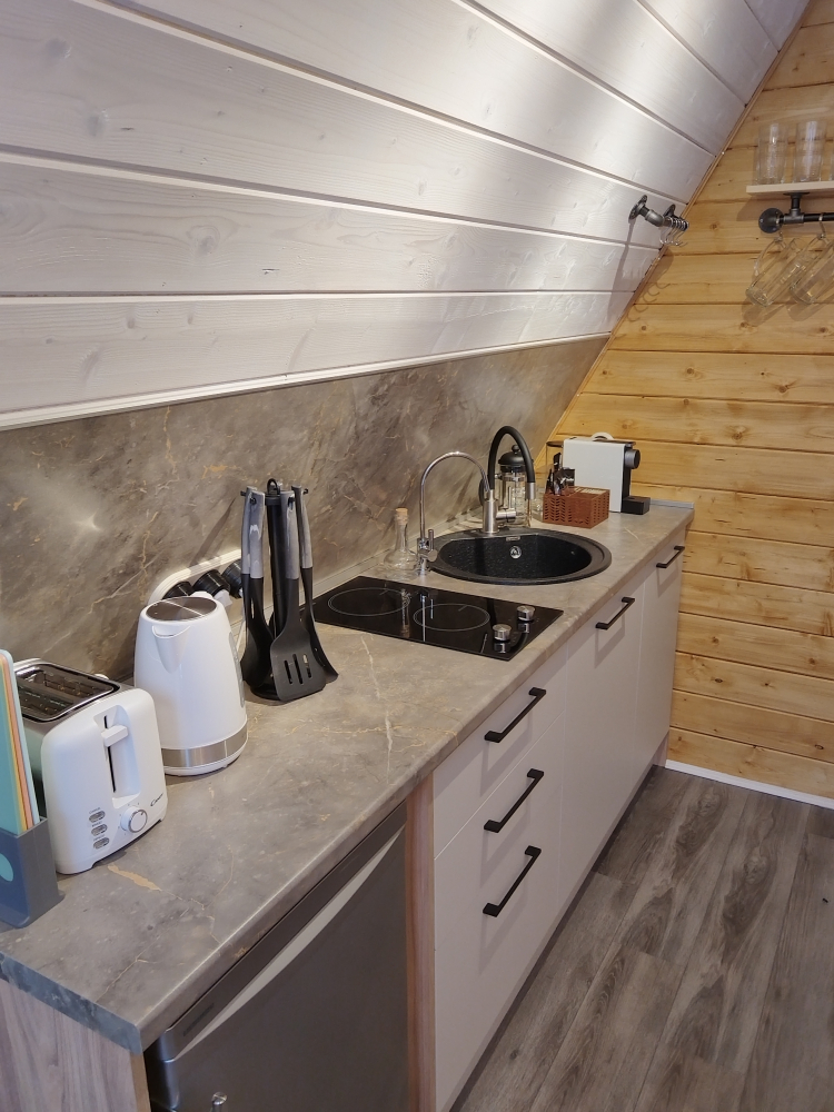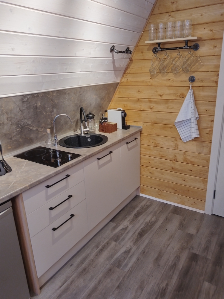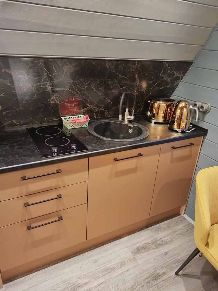 - Полностью оборудованные кухни: холодильник, микроволновая печь, индукционная плита, посудомоечная машина, кофемашина, фильтры для воды.
