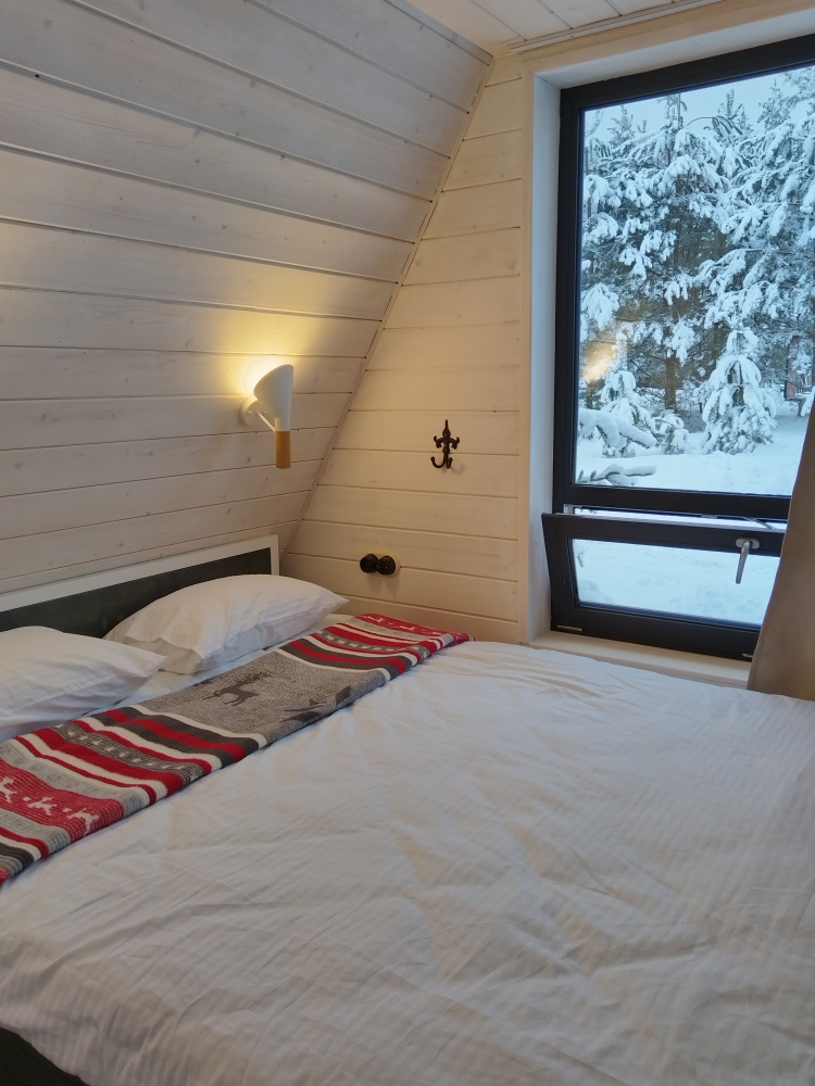 - Особенности: ванна с видом на лес, кровать (160х200) у окна.