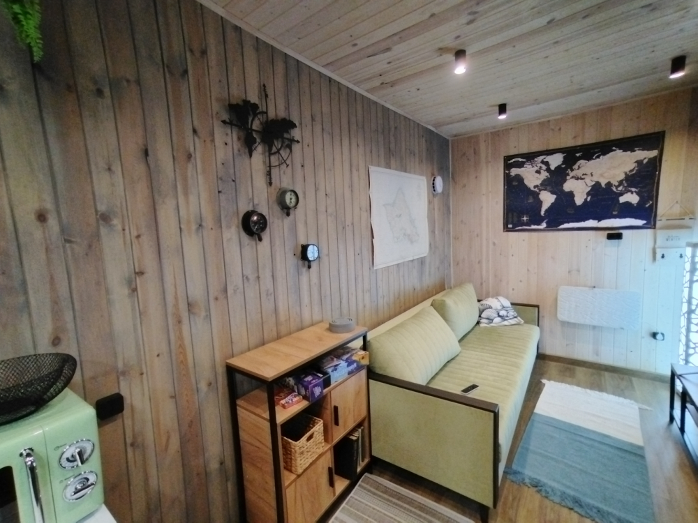 - Особенности: отдельная спальня на 1 этаже, спальные места на антресоли с большим окном.