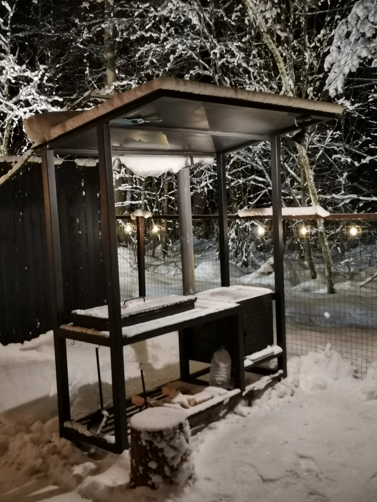 О гриль в беседке. Топиться дровами (выдаются бесплатно).