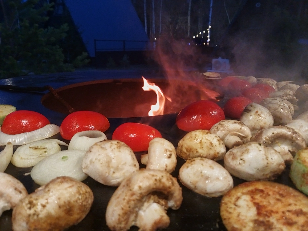 Рядом с домиками есть мангальная зона. Пользование мангалом и шампурами - бесплатное. Привозите с собой решетку + угли и мясо.
