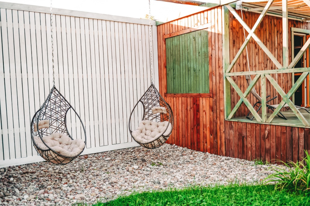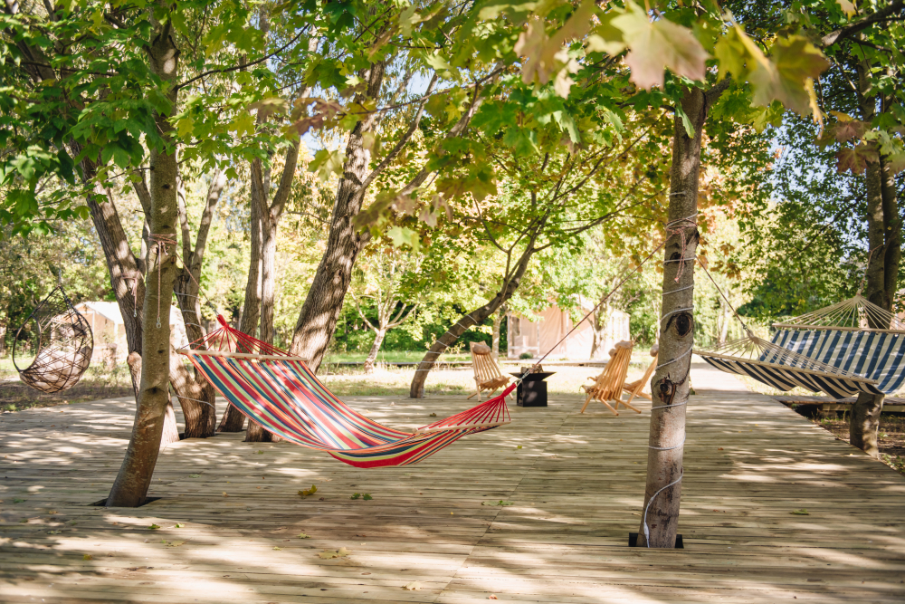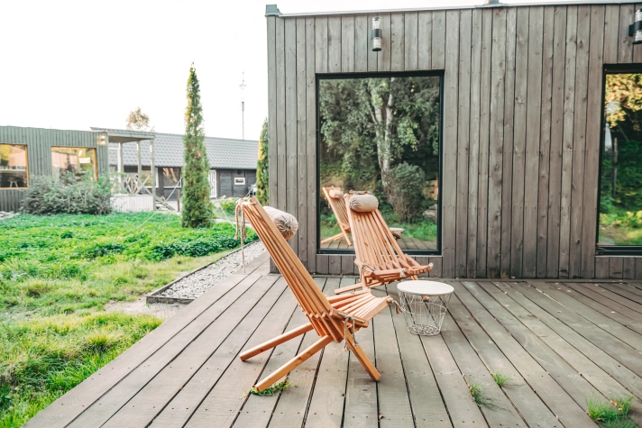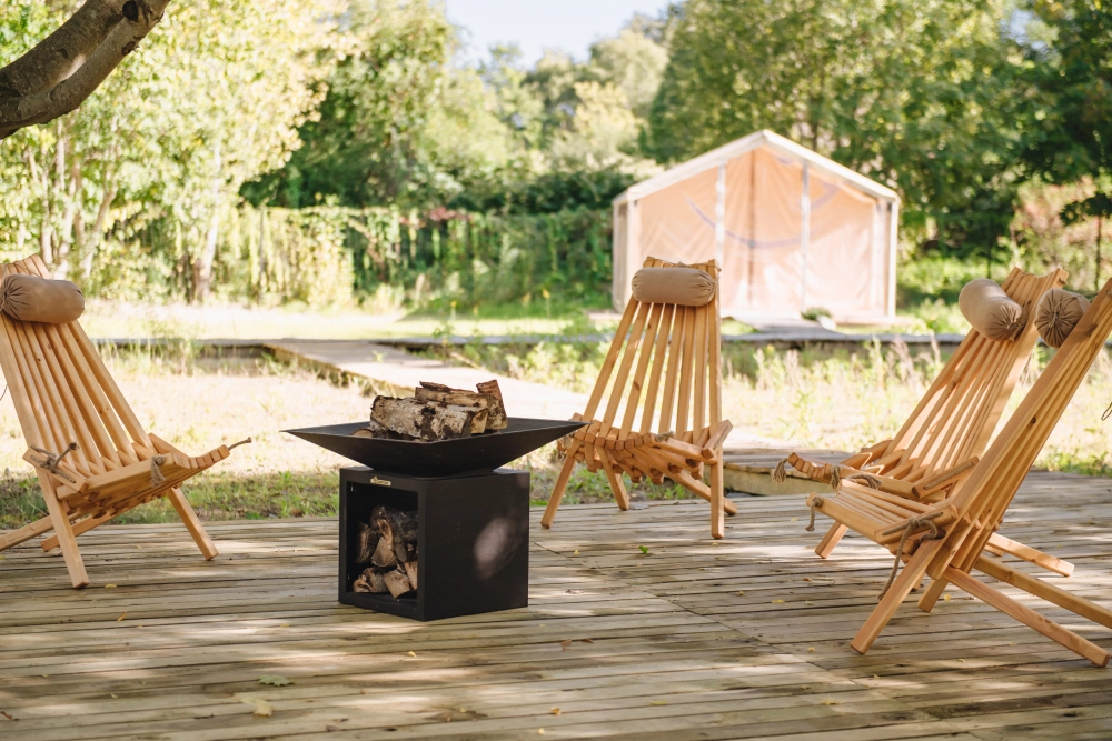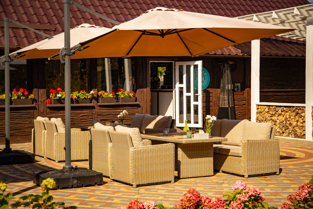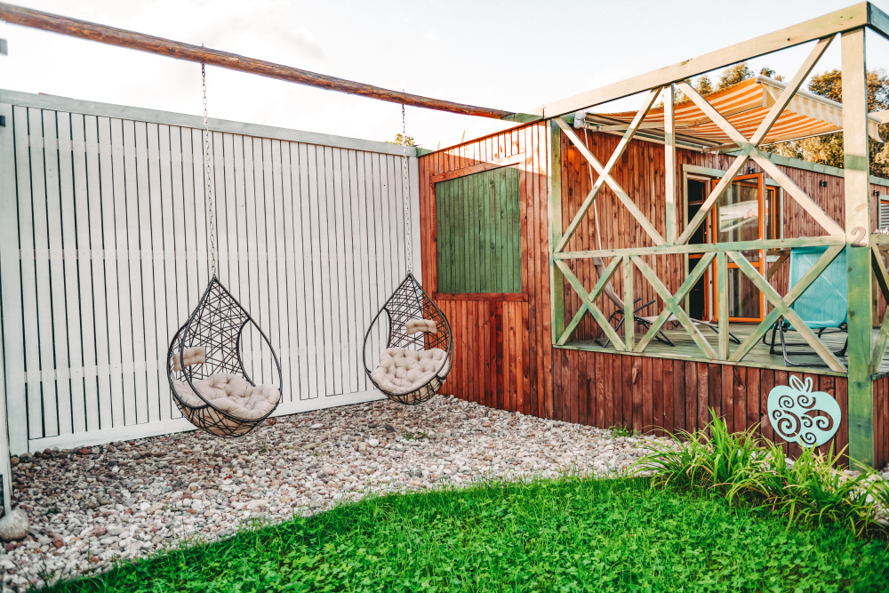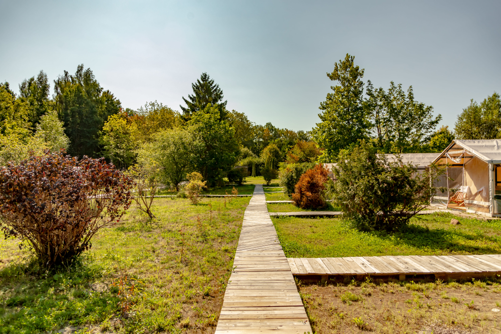 Просторная зона отдыха, окруженная природой, с уютными уголками для расслабления.