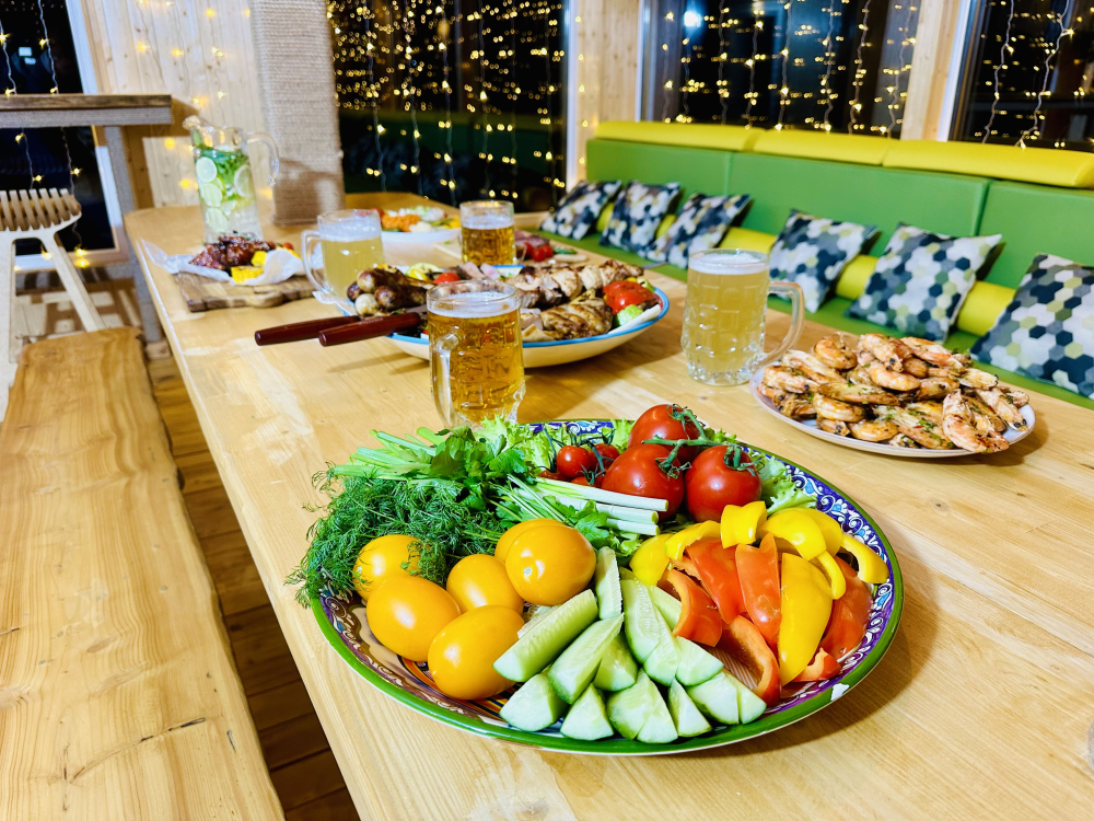 Для полноценного отдыха предлагаем воспользоваться услугами банного комплекса, расположенного на территории. Он включает парилку на 12 гостей, изолированные душевые кабины, крытую террасу с сибирским чаном на дровах и просторный предбанник с диванами и столами. Вы можете арендовать всю баню или посещать ее в общем порядке. Оплата производится за сеанс длительностью 3 часа. В стоимость включена оплата халата, полотенца, воды и одноразовых тапочек. На территорию бани запрещено проносить алкоголь, напитки и еду. Стоимость 5000 рублей за человека.