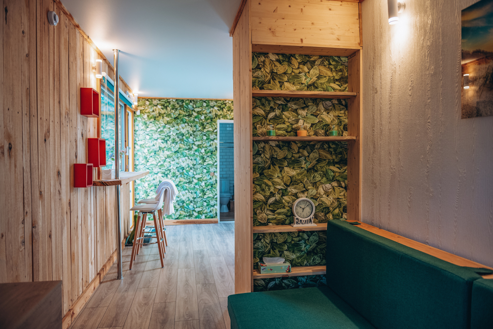 Парилка на 12 гостей с изолированными душевыми кабинами.