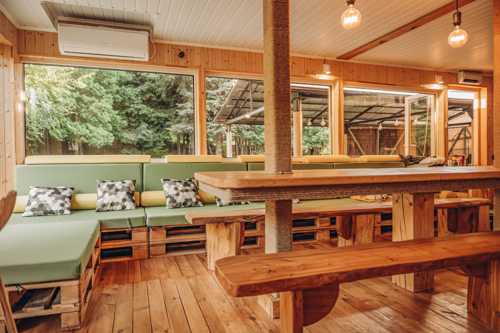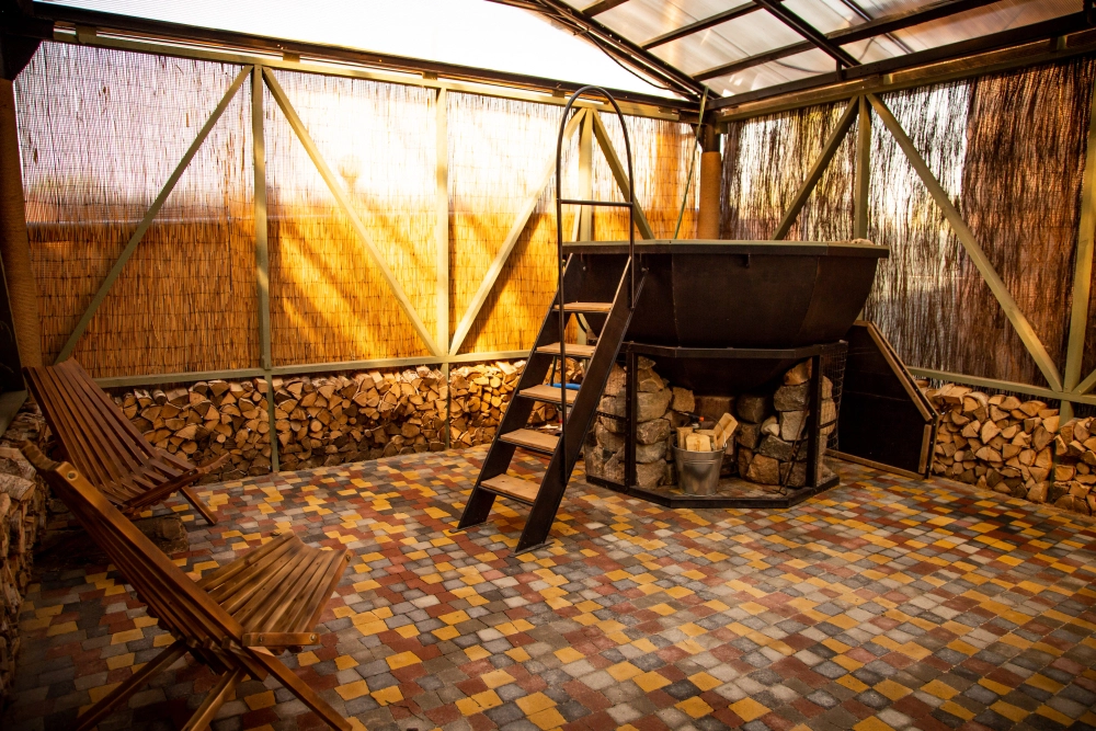 Крытая терраса с сибирским чаном на дровах, который оплачивается отдельно.