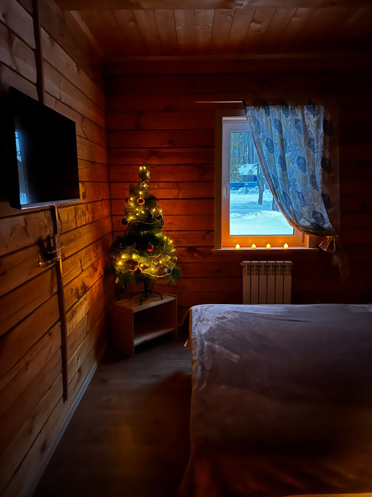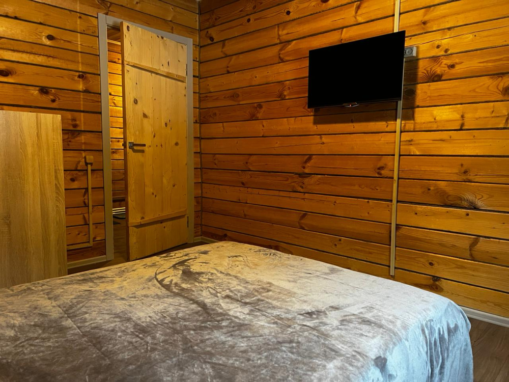 Дома из бруса: уютные дома с двумя комнатами, рассчитанные на 4 человека, оборудованы кухней, двуспальной кроватью, односпальными кроватями, ТВ, кондиционером.