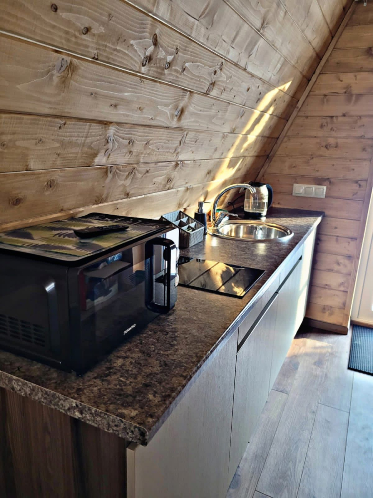 A-Frame дом с сауной: оборудован финской сауной с горячим сухим воздухом, работающей до 22:00 (подготовка согласовывается заранее).