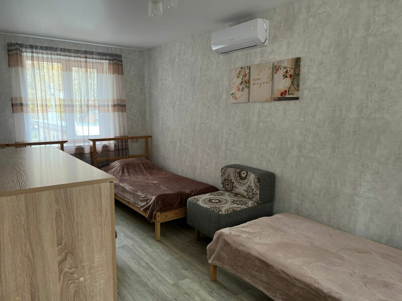 Дом "Семейный": просторный дом на 11 человек с кухней, гостиной, четырьмя спальнями и балконом, который летом можно использовать как открытую террасу.