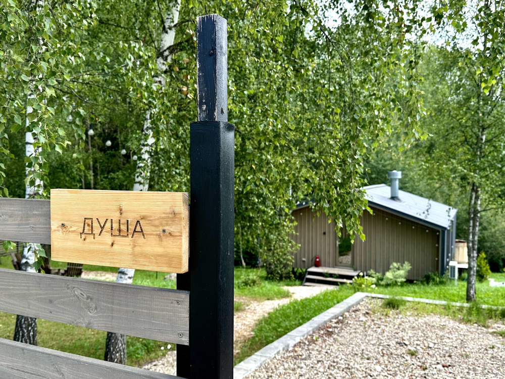 Дом находится на территории закрытого коттеджного посёлка. Рядом озеро с платной рыбалкой, где зимой можно кататься на коньках, а летом — на сапах.