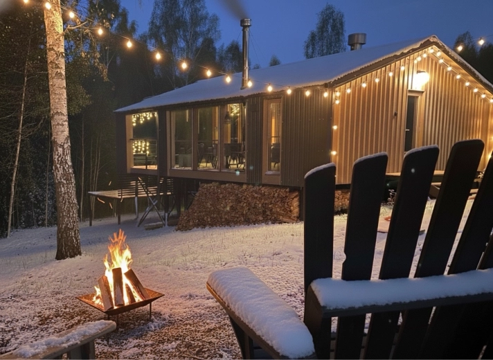 - Мангальная зона и уютная костровая зона с видом на лес, удобные кресла и ретро-лампочки