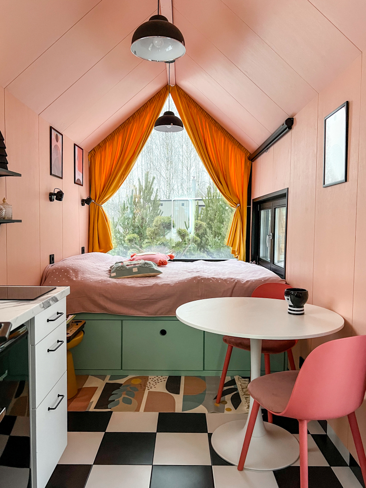 Этот дом сочетает в себе оригинальную геометрию, яркие интерьерные решения и сказочную атмосферу. Комфортно будет как перфекционисту, так и искателю приключений, мечтающему попасть на чаепитие к Шляпнику.