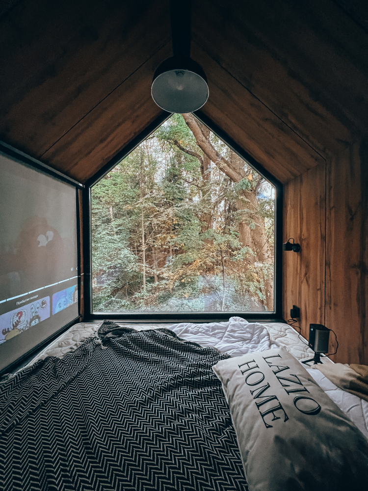 - Для вечерних посиделок дом оборудован проектором и экраном.
