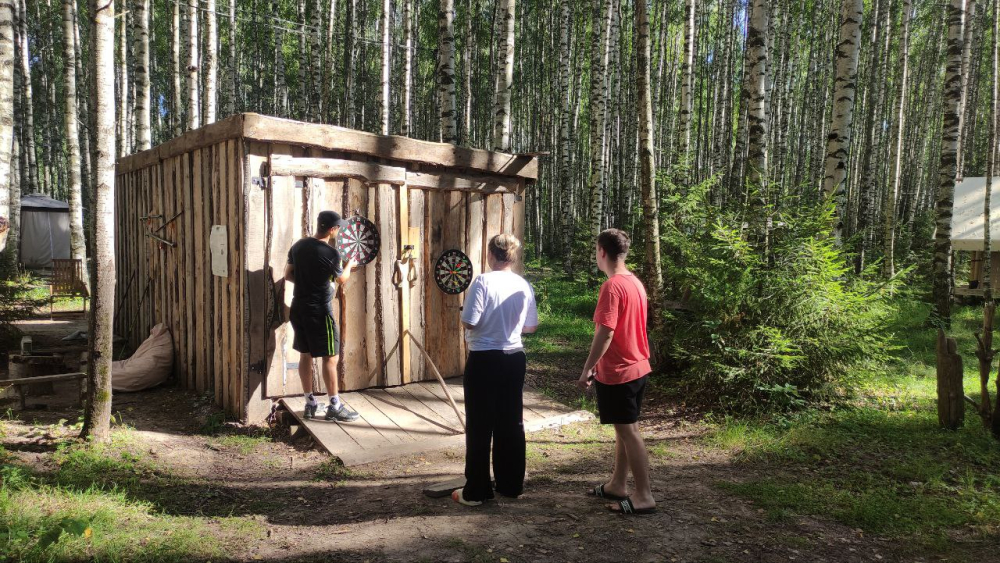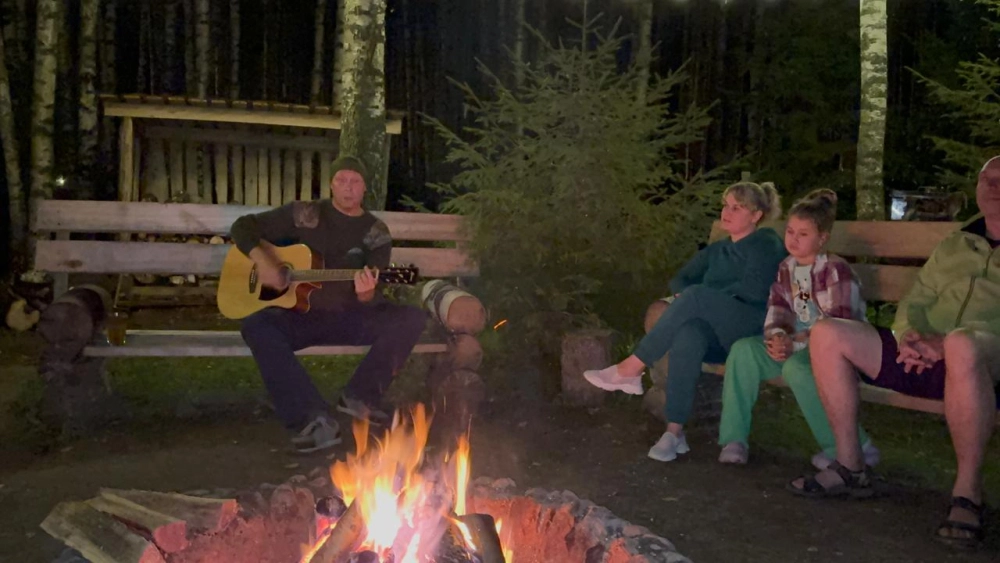 На территории предусмотрена общая костровая зона, где гости могут собираться для уютных вечеров у огня, наслаждаясь теплой атмосферой и природным окружением.