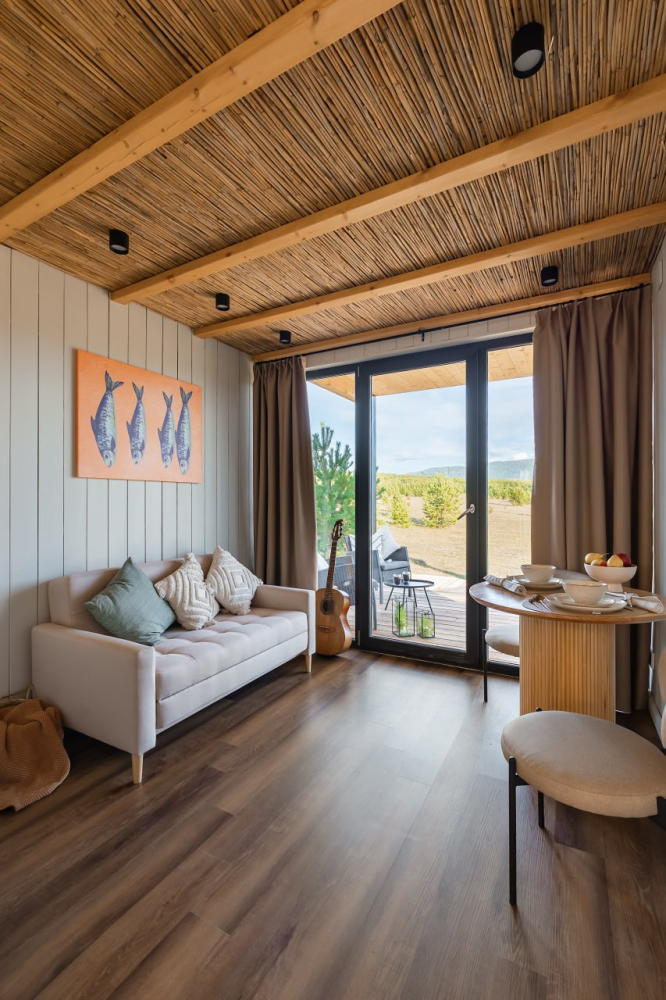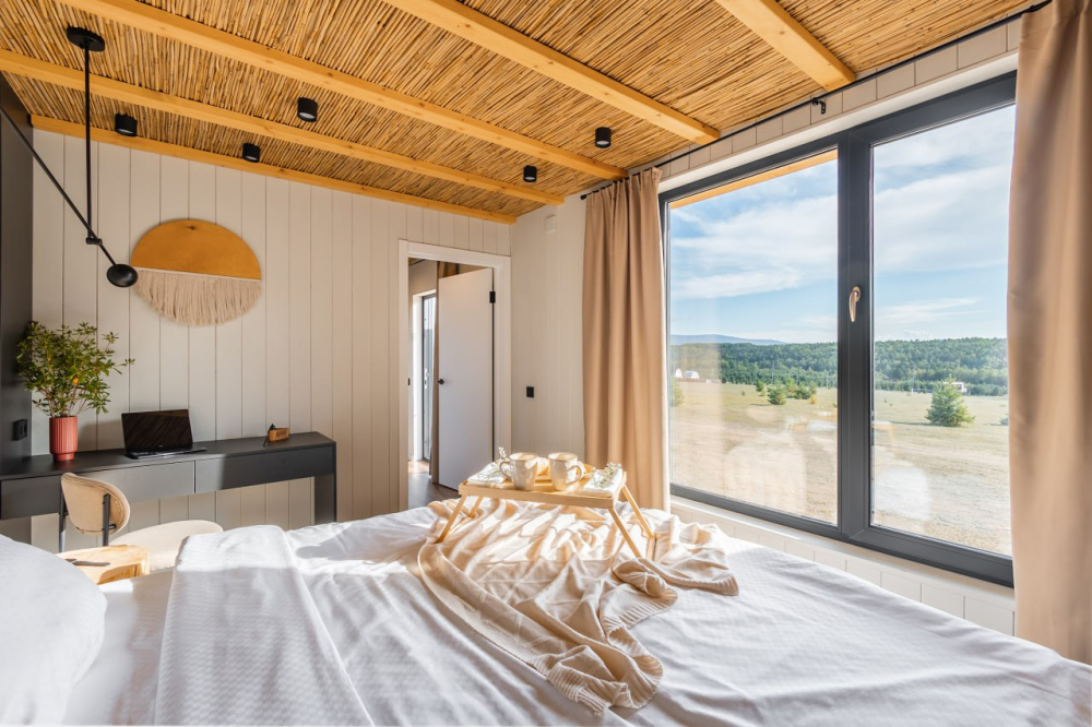 Особенности: панорамный вид на горы, тёплый и современный дизайн.