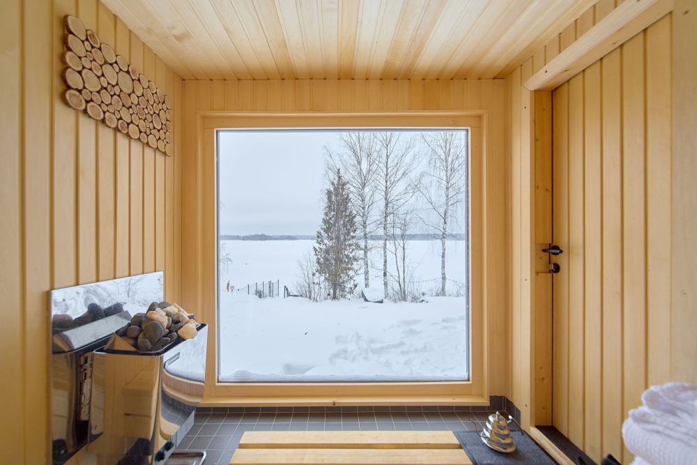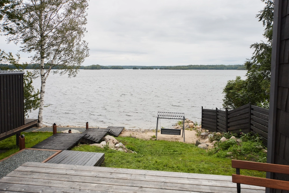 - Домик с видом на озеро и сауной