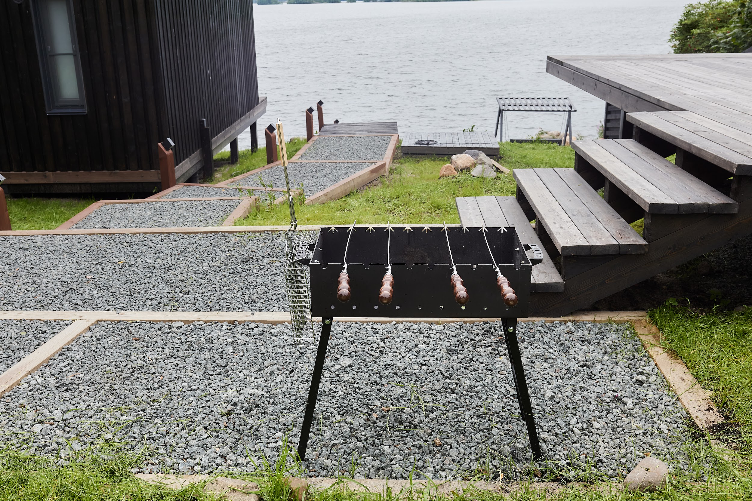 Барбекю зона есть около домиков Семейный дом 2+2 с видом на озеро 3, Семейный номер 2+2 с видом на озеро 4, Домик на 2 с видом на озеро и мансардным окном, Домик на 2 с видом на озеро.