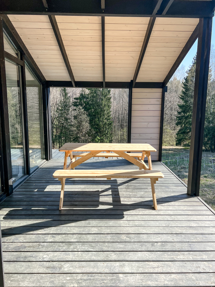 - Стол с лавками для трапезы на свежем воздухе.