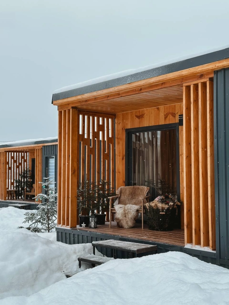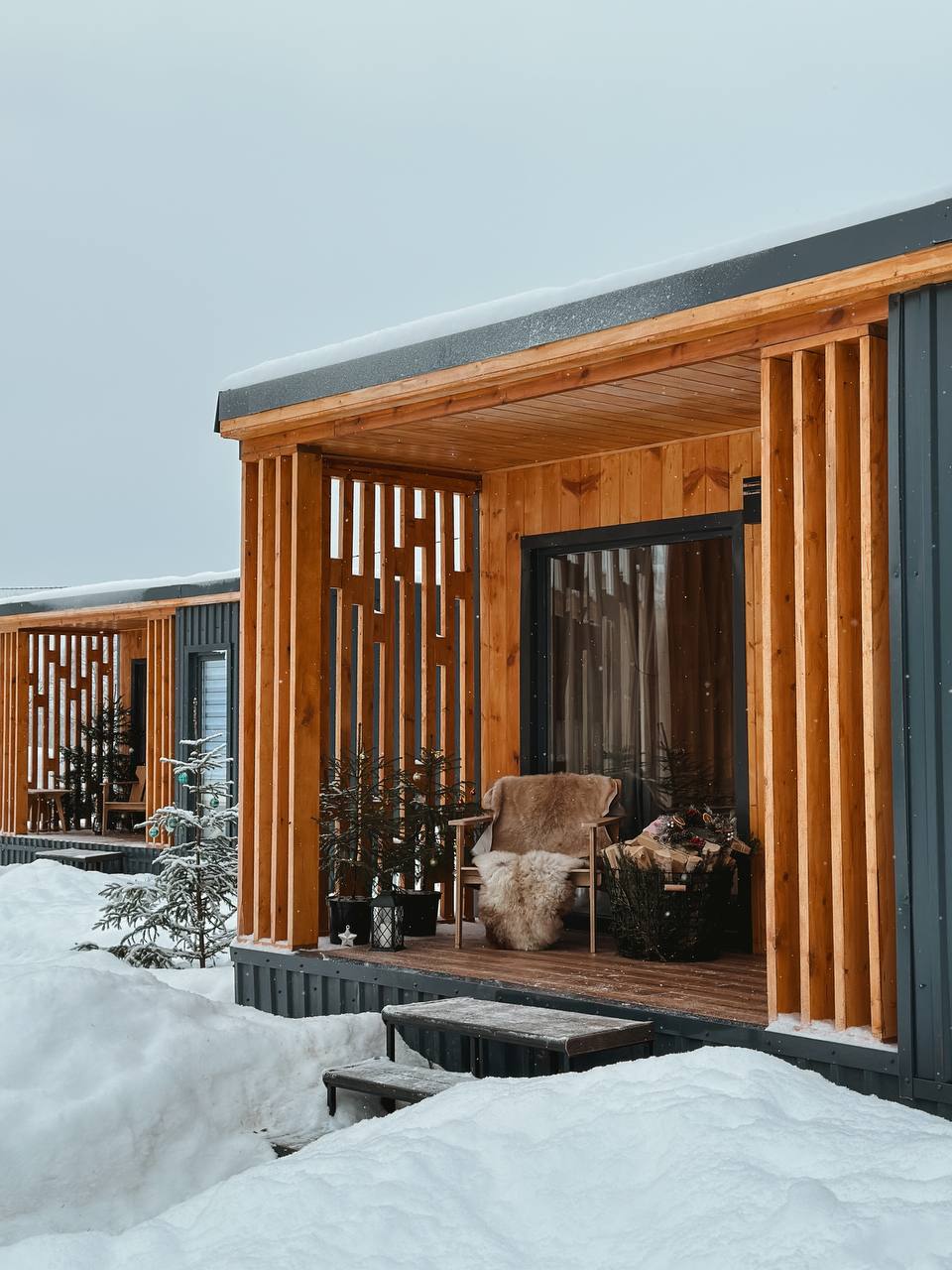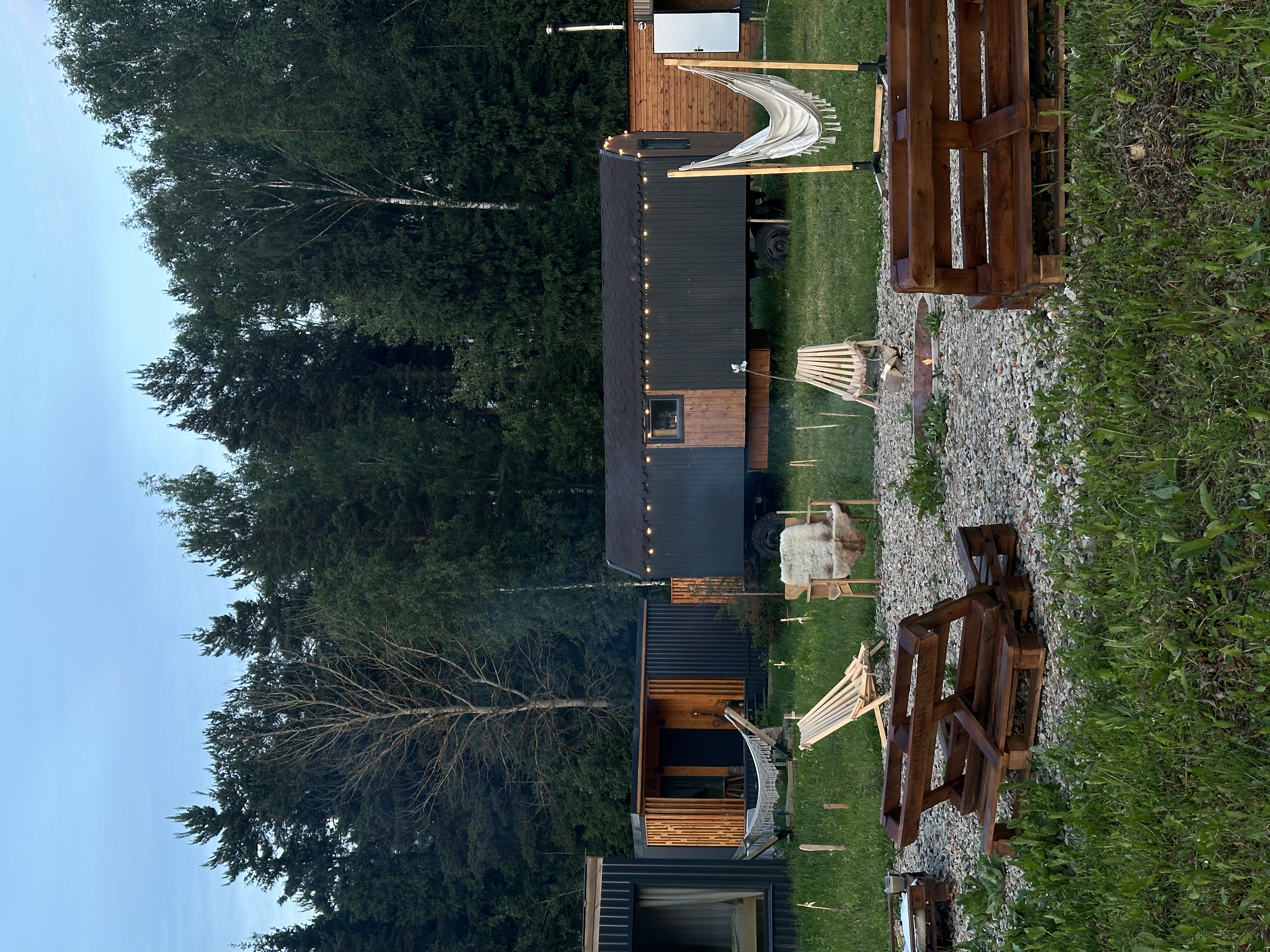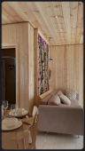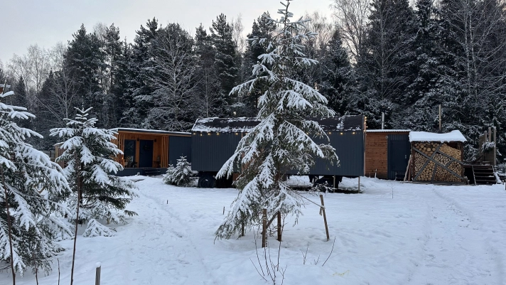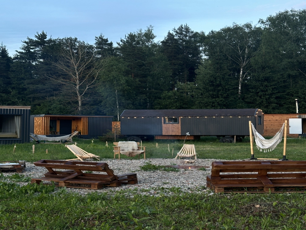 Около каждого домика есть мангальная зона, где предусмотрены решётки и шампуры. Угли нужно привозить с собой.