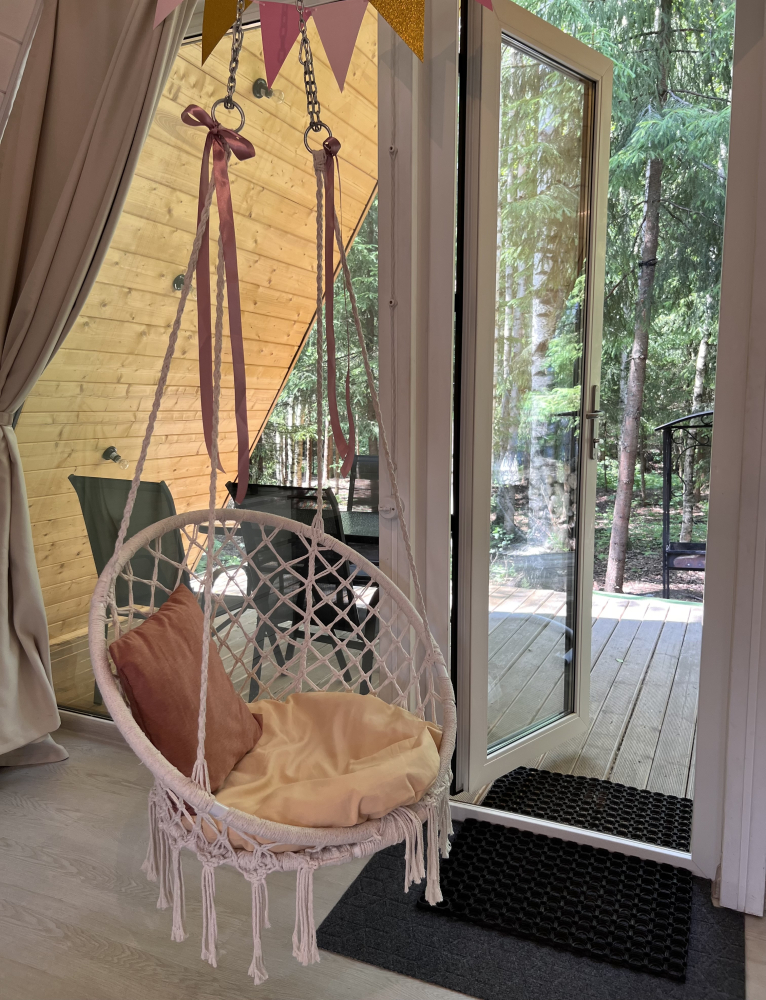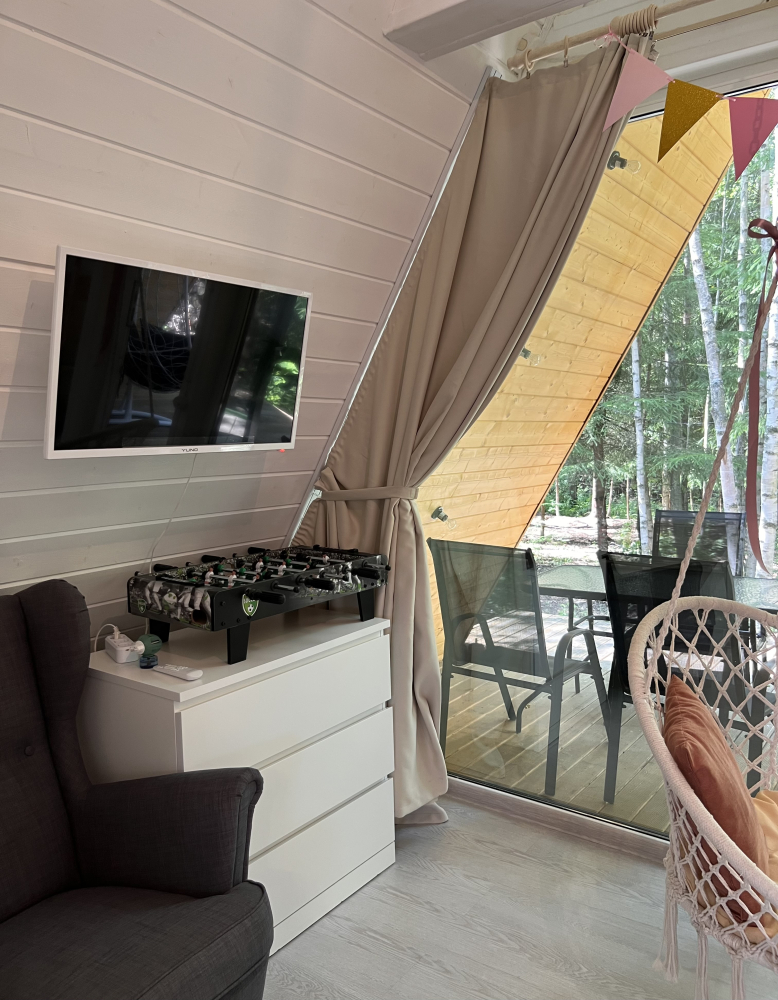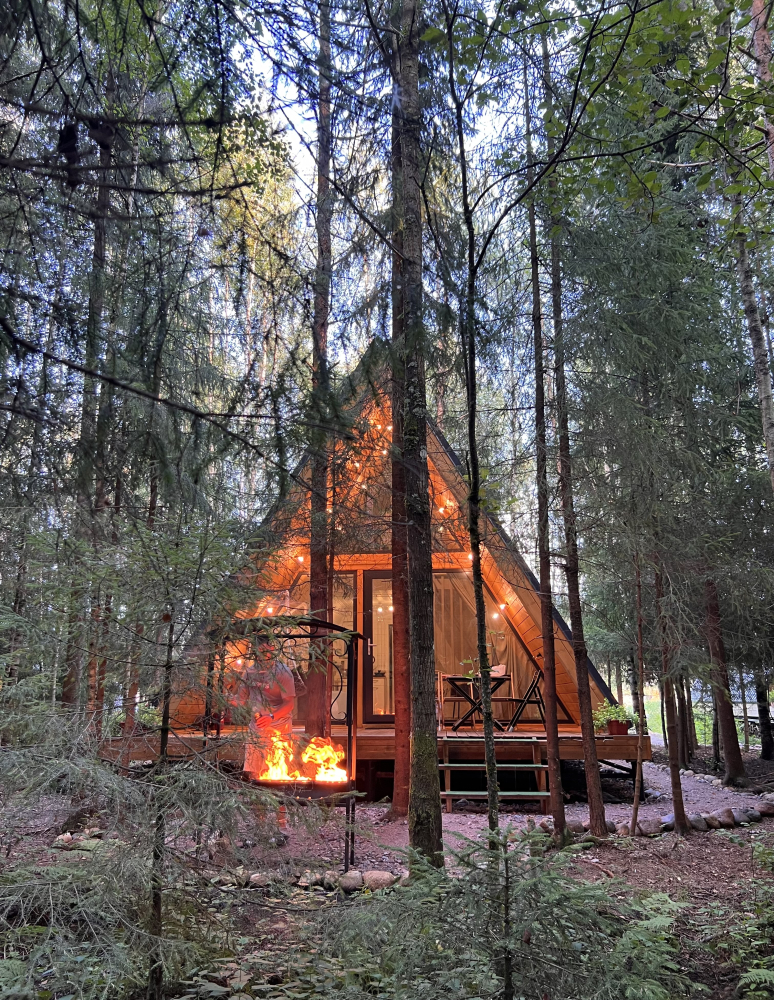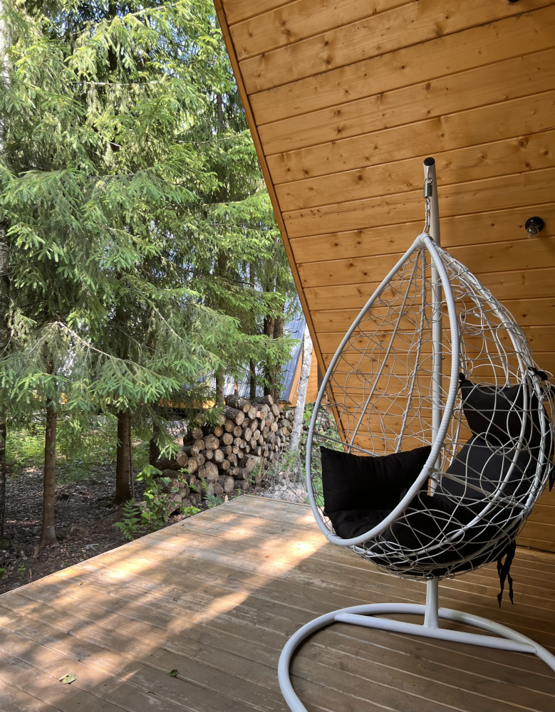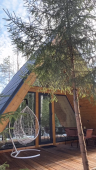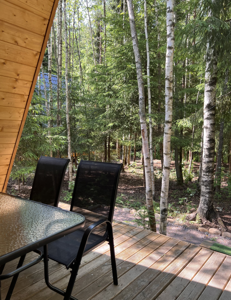 8 домиков A-frame , каждый из которых рассчитан на проживание 2-4 человек , имеют свою террасу с мангалом и зоной отдыха.