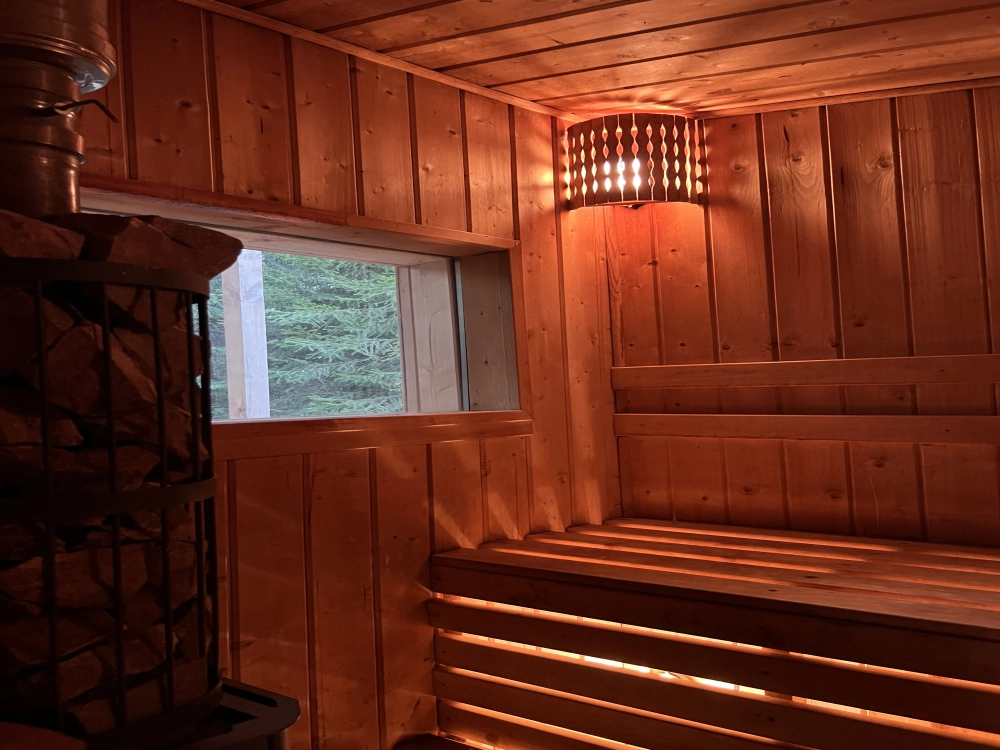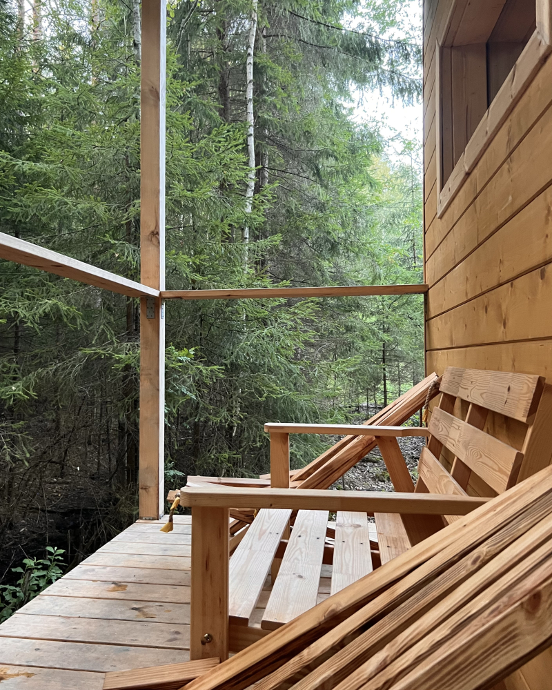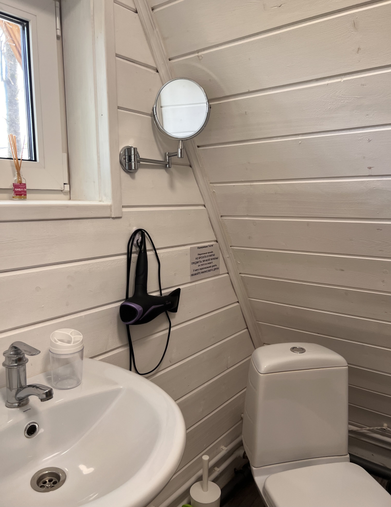 - Попариться в бане с берёзовыми вениками, выпить чая на террасе с видом на лес — идеальный вечер. Веник, шапочки, простыни, аромамасла и чай включены. Вместимость — до 4 человек. Есть душевая и туалет. Доп. час — 2000 руб.